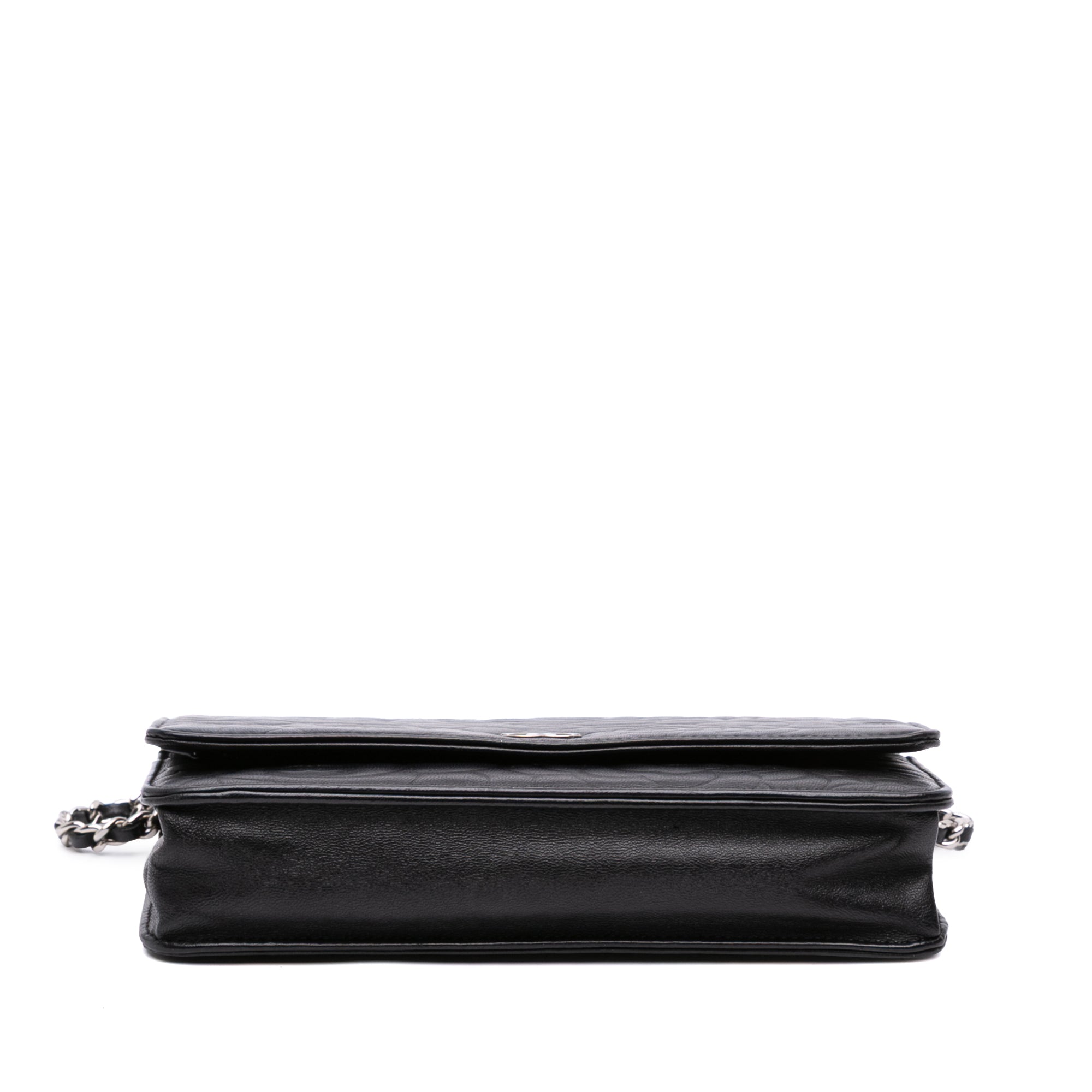 Black Chanel Camellia Embossed Lambskin Wallet On Chain Crossbody Bag - Designer Revival Black Chanel Camellia Embossed Lambskin Wallet On Chain Crossbody Bag - Designer Revival