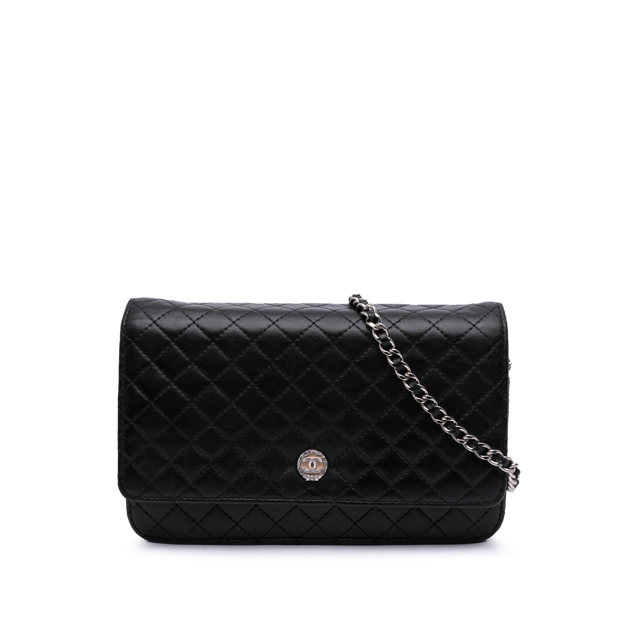 Black Chanel CC Quilted Lambskin Wallet On Chain Crossbody Bag - Designer Revival Black Chanel CC Quilted Lambskin Wallet On Chain Crossbody Bag - Designer Revival