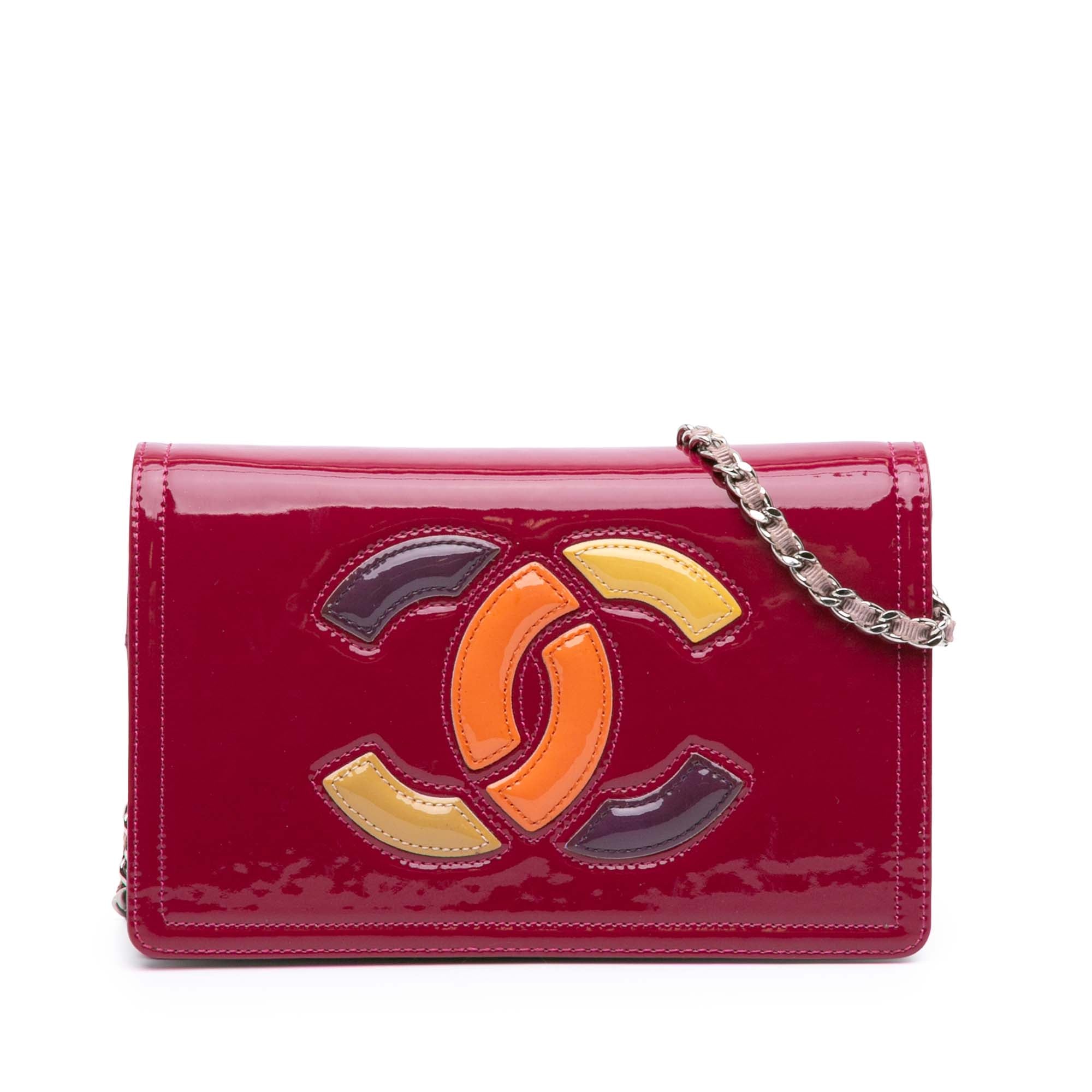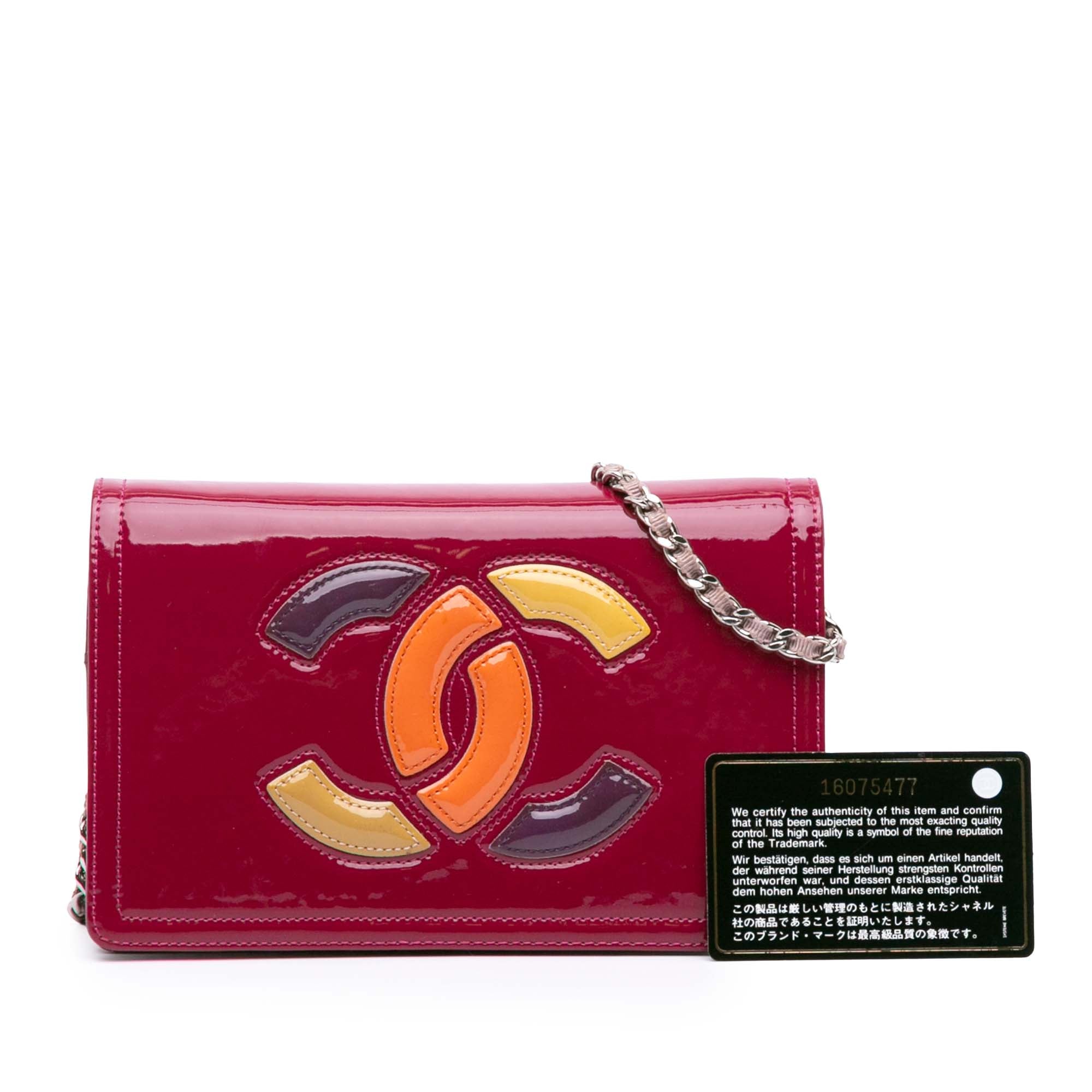 Pink Chanel Patent CC Lipstick Wallet On Chain Crossbody Bag - Designer Revival Pink Chanel Patent CC Lipstick Wallet On Chain Crossbody Bag - Designer Revival