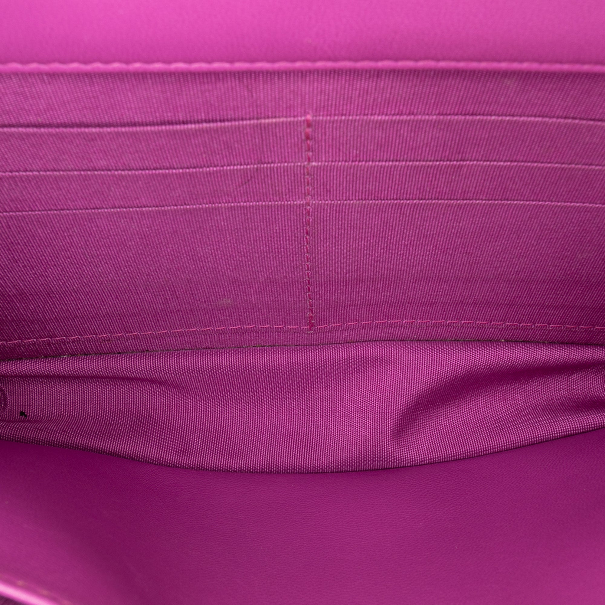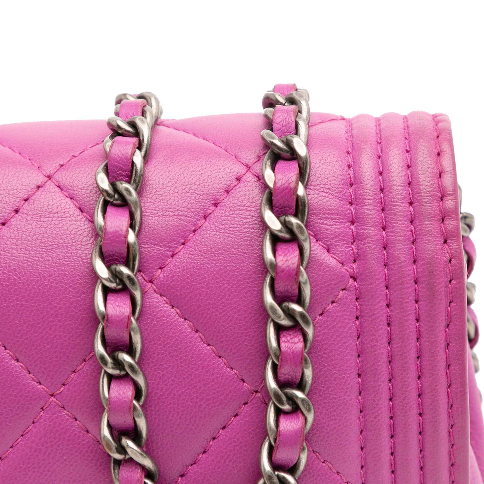 Please note this is a pre-owned item that may display signs of wear consistent with the condition listed above and shown in photos. Designer Revival guarantees this is an authentic Purple Chanel Lambskin Boy Wallet on Chain Crossbody Bag or 100% of your money back. Learn more about our authentication process.
