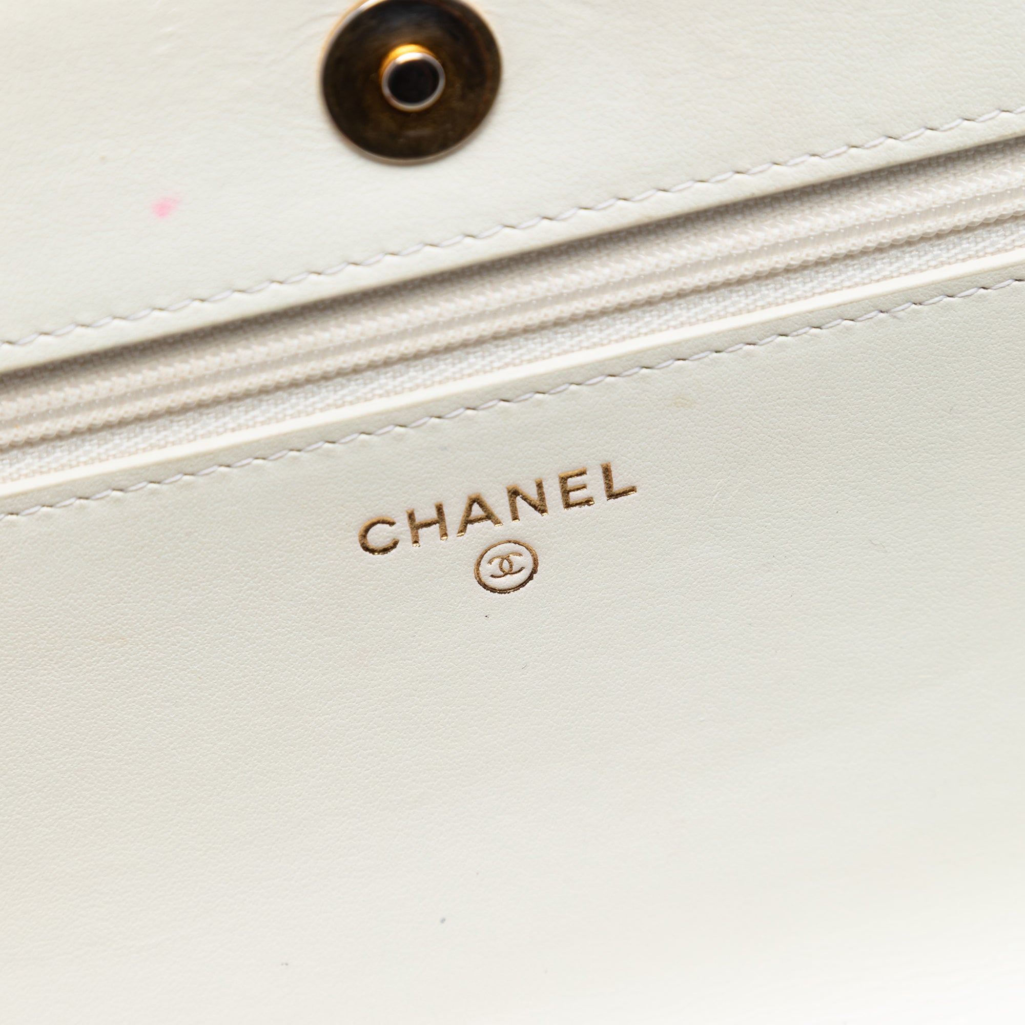 White Chanel Quilted Caviar Boy Wallet on Chain Crossbody Bag