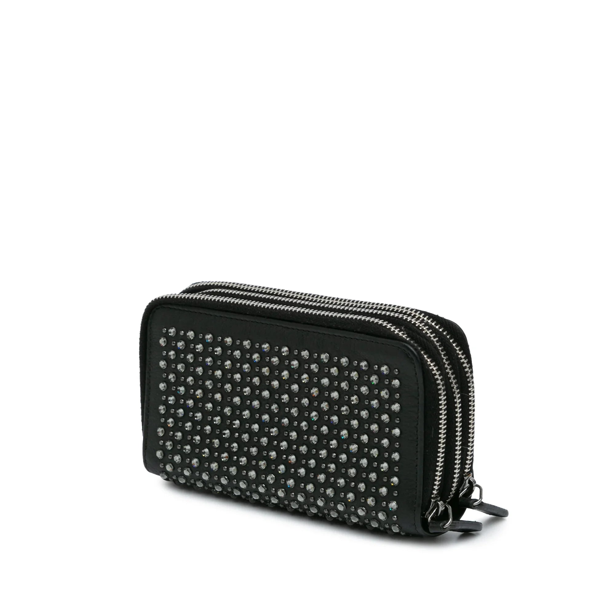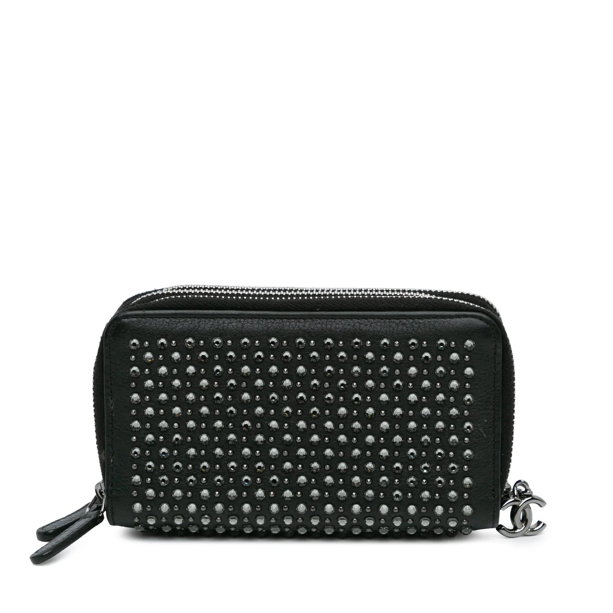 Black Chanel Bull Leather Studded Zip Wallet