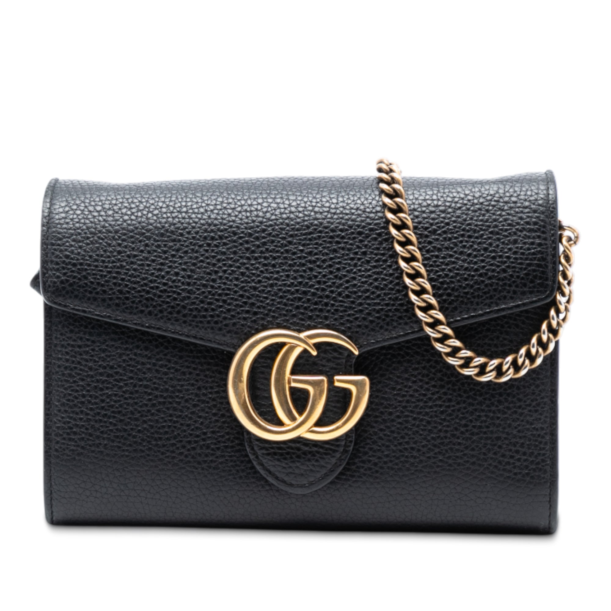 Black Gucci GG Marmont Leather Wallet on Chain Crossbody Bag