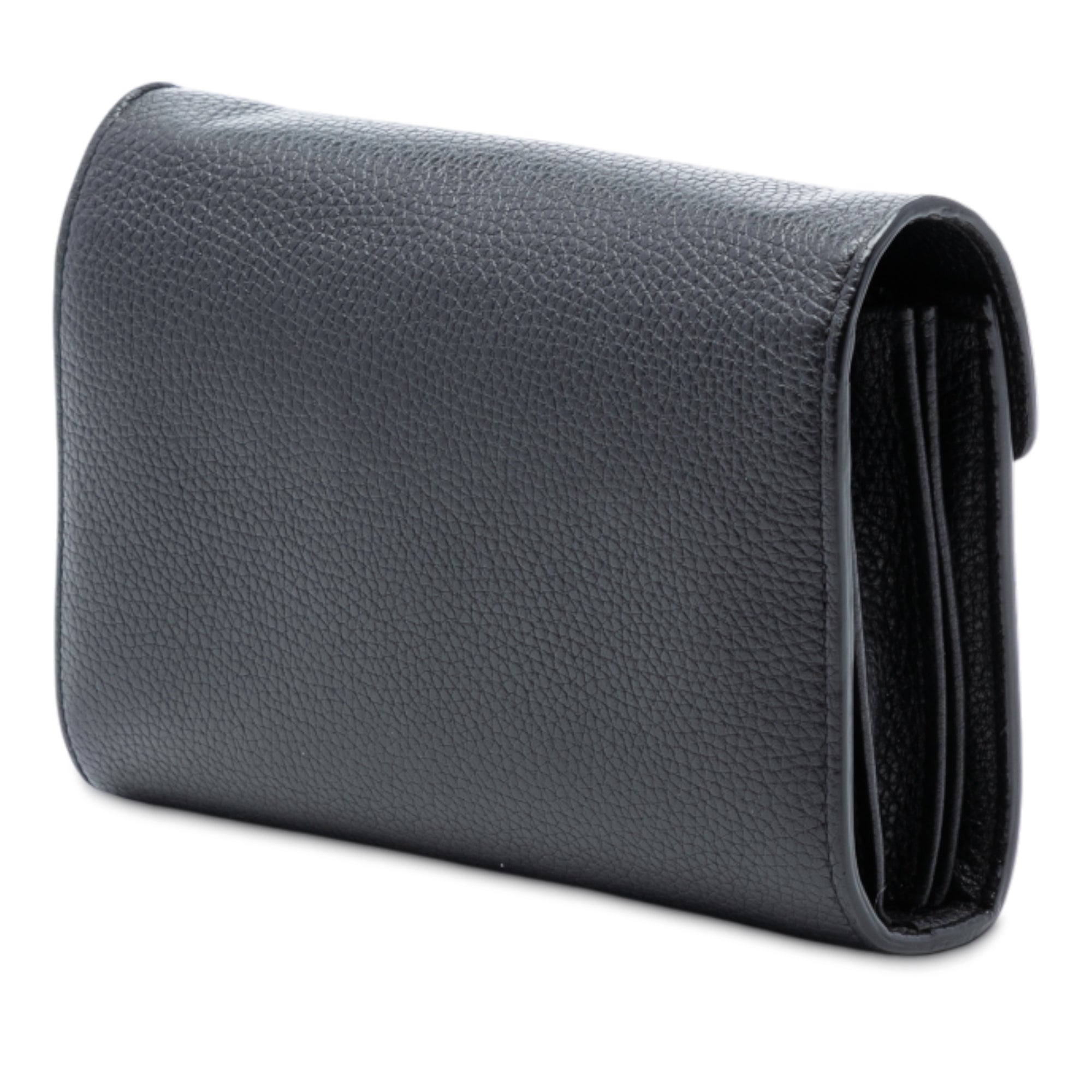 Product Details: Black Gucci GG Marmont Leather Wallet on Chain Crossbody Bag. This wallet on chain features a leather body, a chain-link shoulder strap, a front flap with a snap button closure, and interior zip and slip pockets. 5.5" L x 7.5" W x 1.6" D. Serial number 401232 1147.