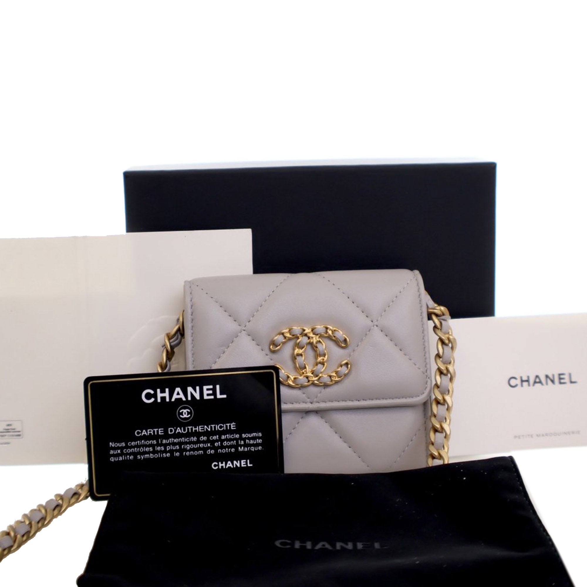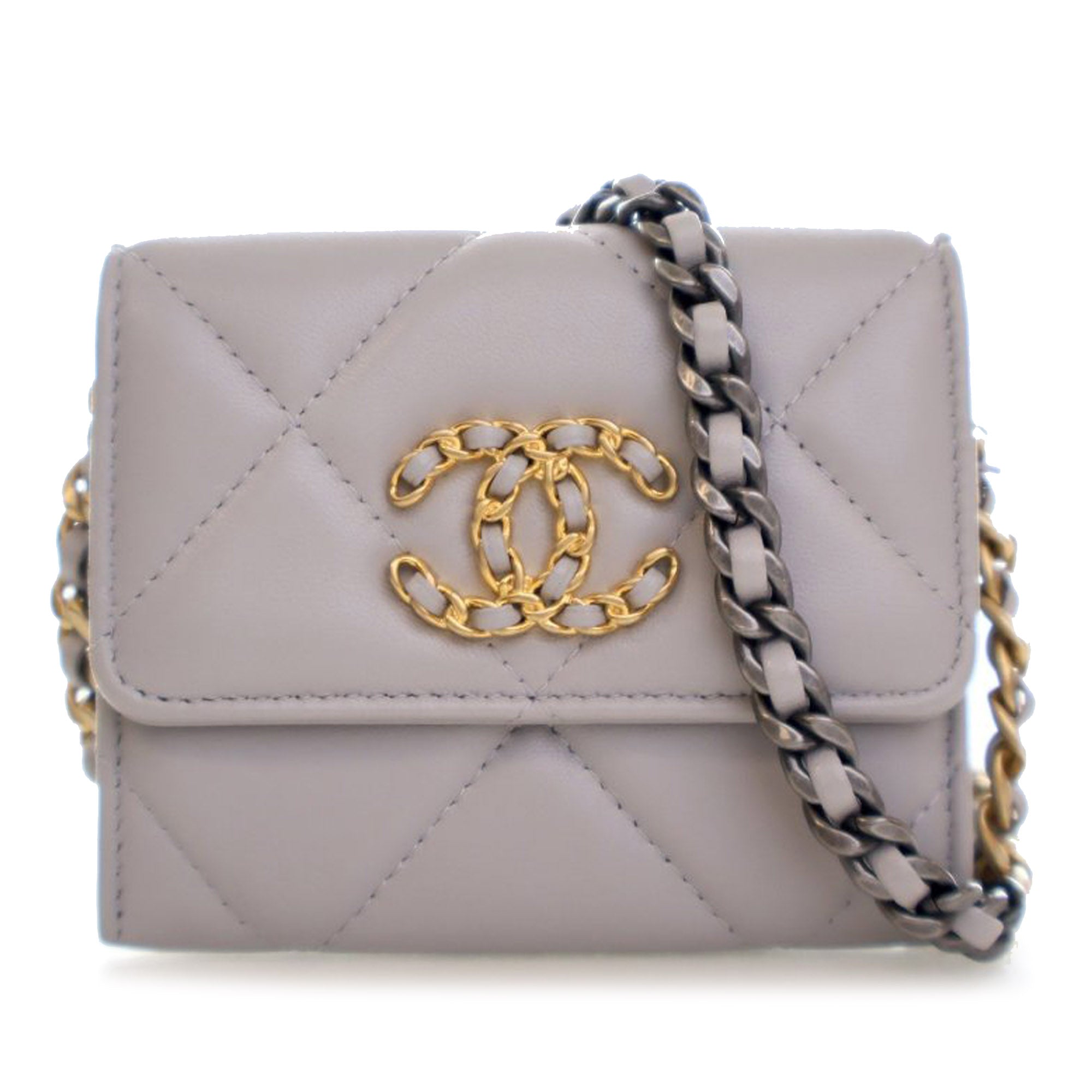 Gray Chanel Quilted Lambskin 19 Flap Coin Purse With Chain Crossbody Bag