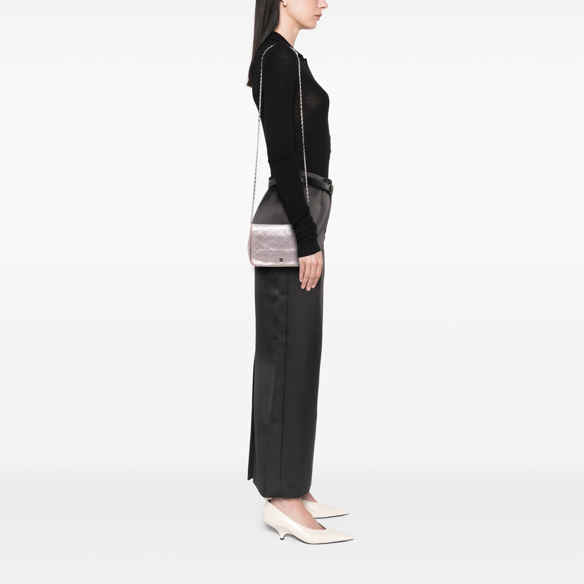 Pink Chanel CC Quilted Metallic Lambskin Wallet On Chain Crossbody Bag