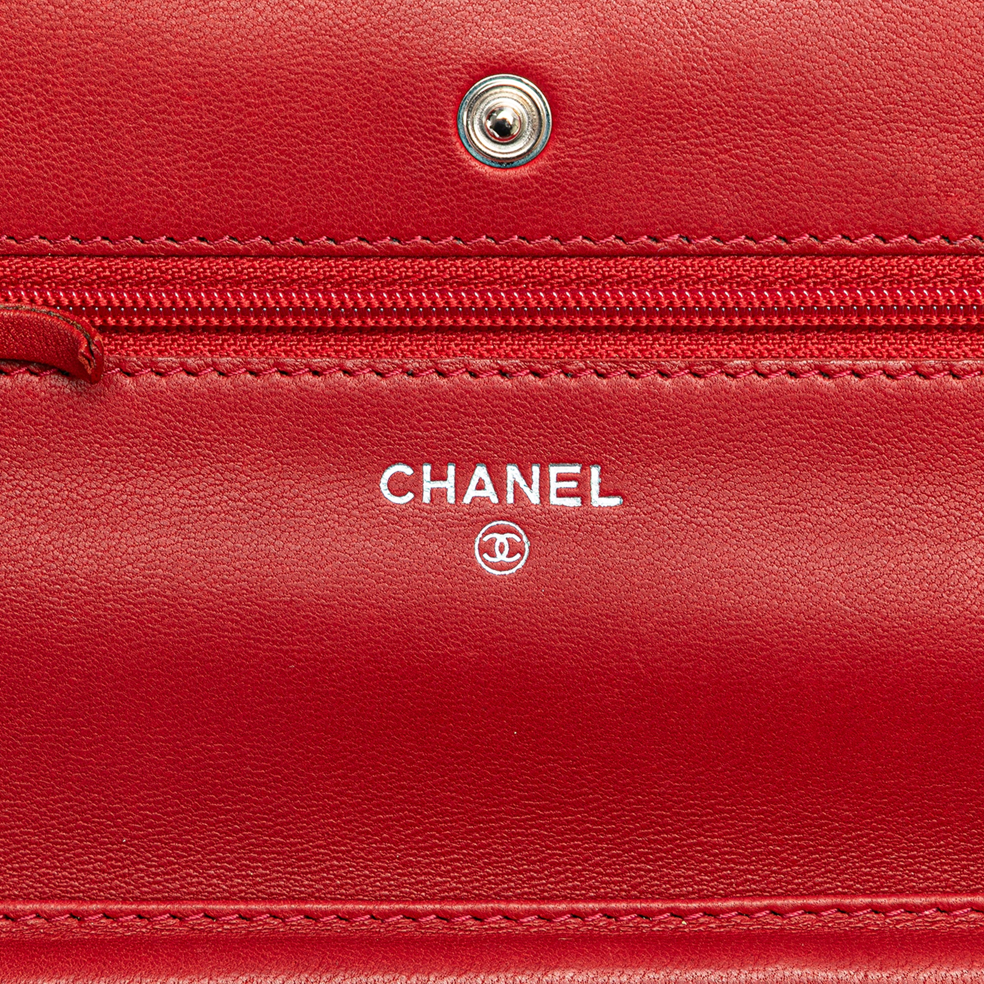 Red Chanel CC Calfskin Wallet On Chain Crossbody Bag