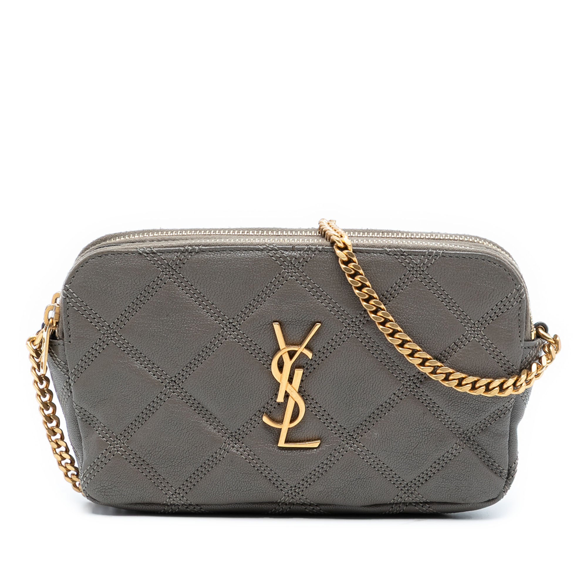 Gray Saint Laurent Mini Quilted Lambskin Becky Double Zip Crossbody