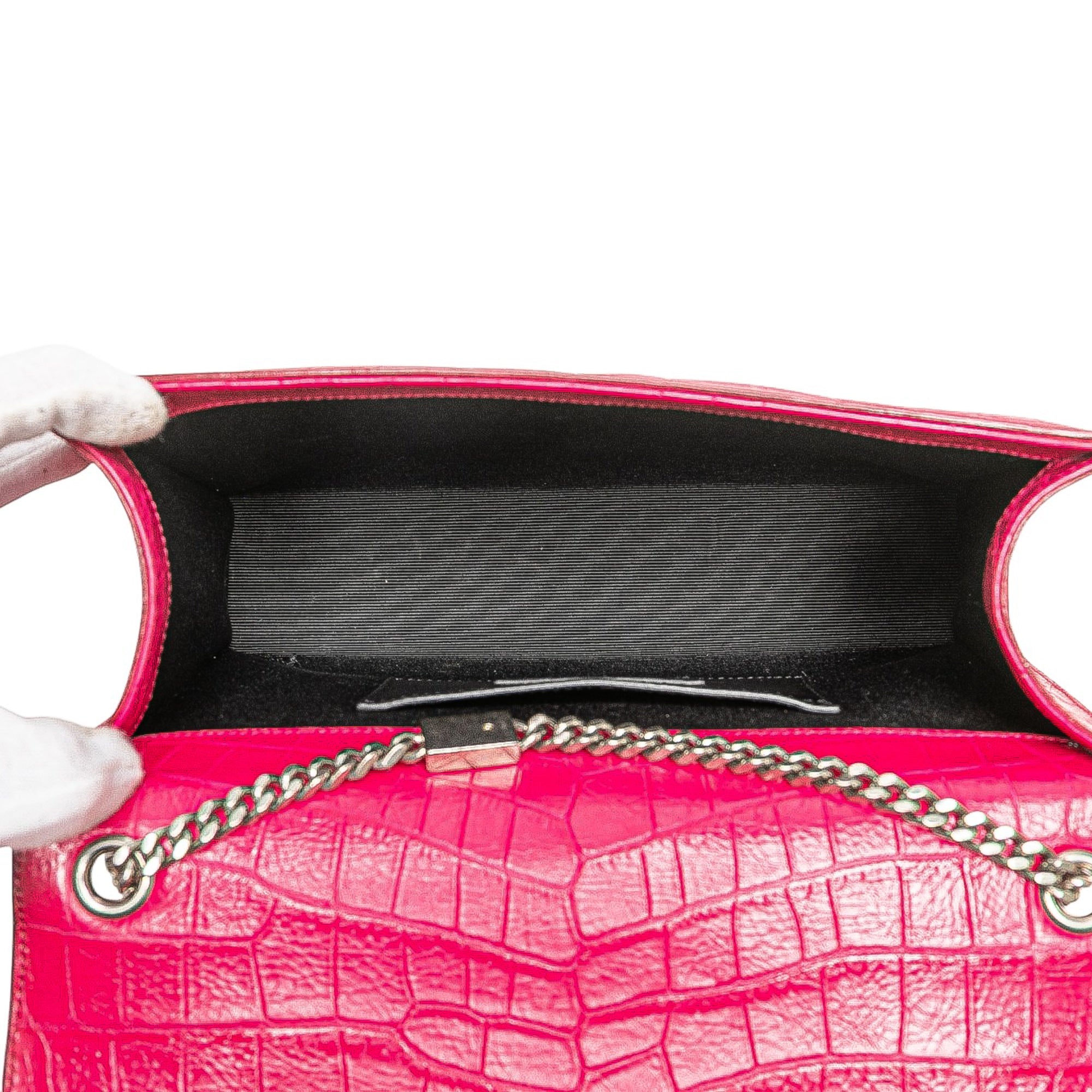 Pink Saint Laurent Medium Croc Embossed Leather Kate Tassel Crossbody