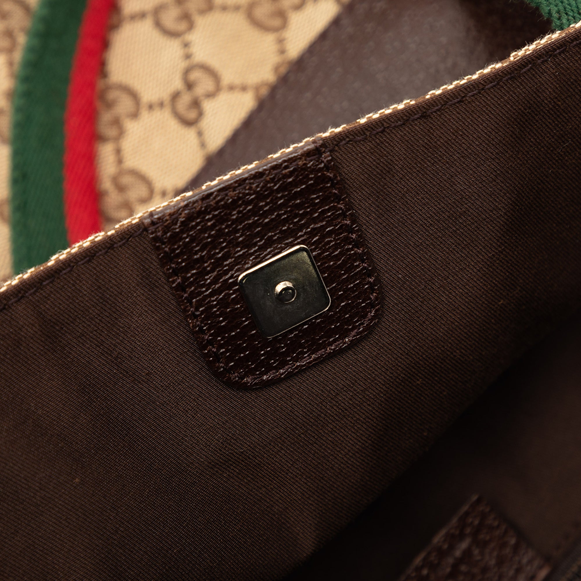 Please note this is a pre-owned item that may display signs of wear consistent with the condition listed above and shown in photos. Designer Revival guarantees this is an authentic Beige Gucci GG Canvas Web Tote or 100% of your money back. Learn more about our authentication process.