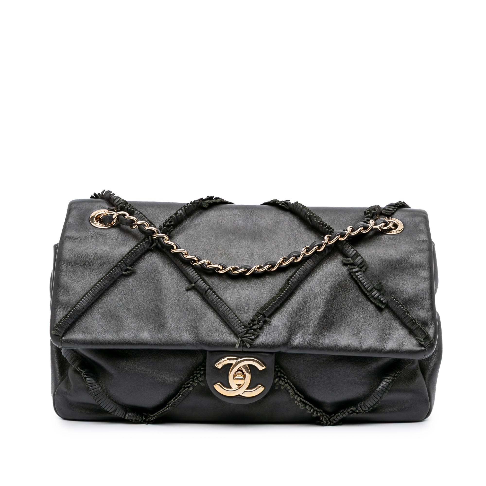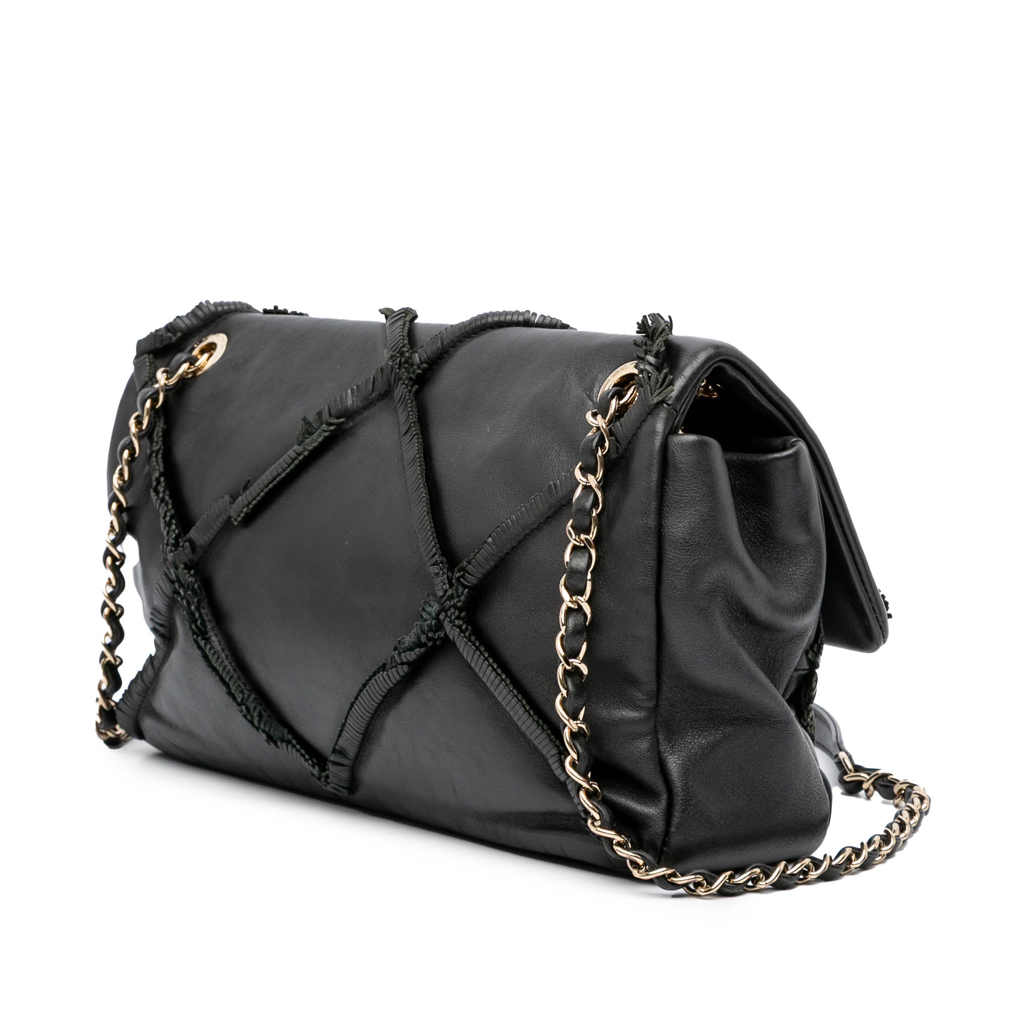 Black Chanel CC Lambskin Fringe Single Flap Crossbody Bag