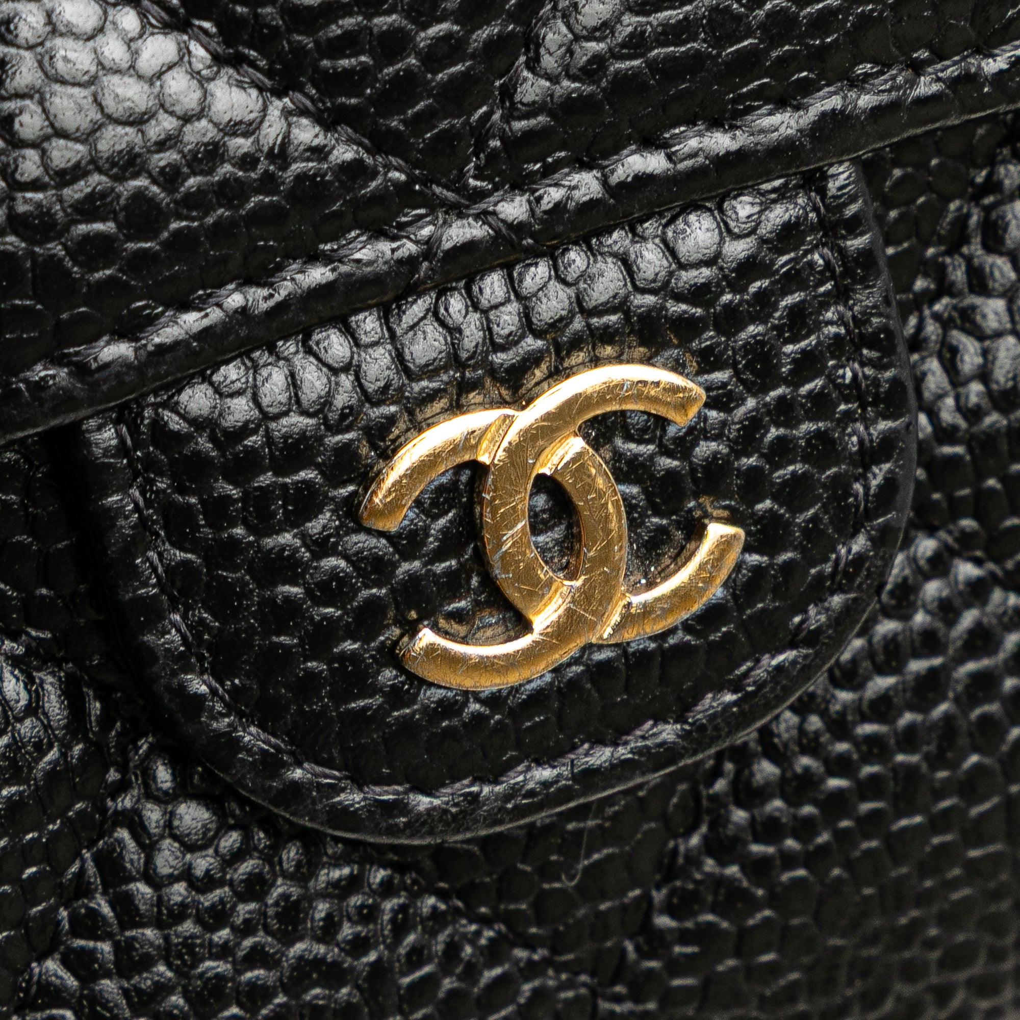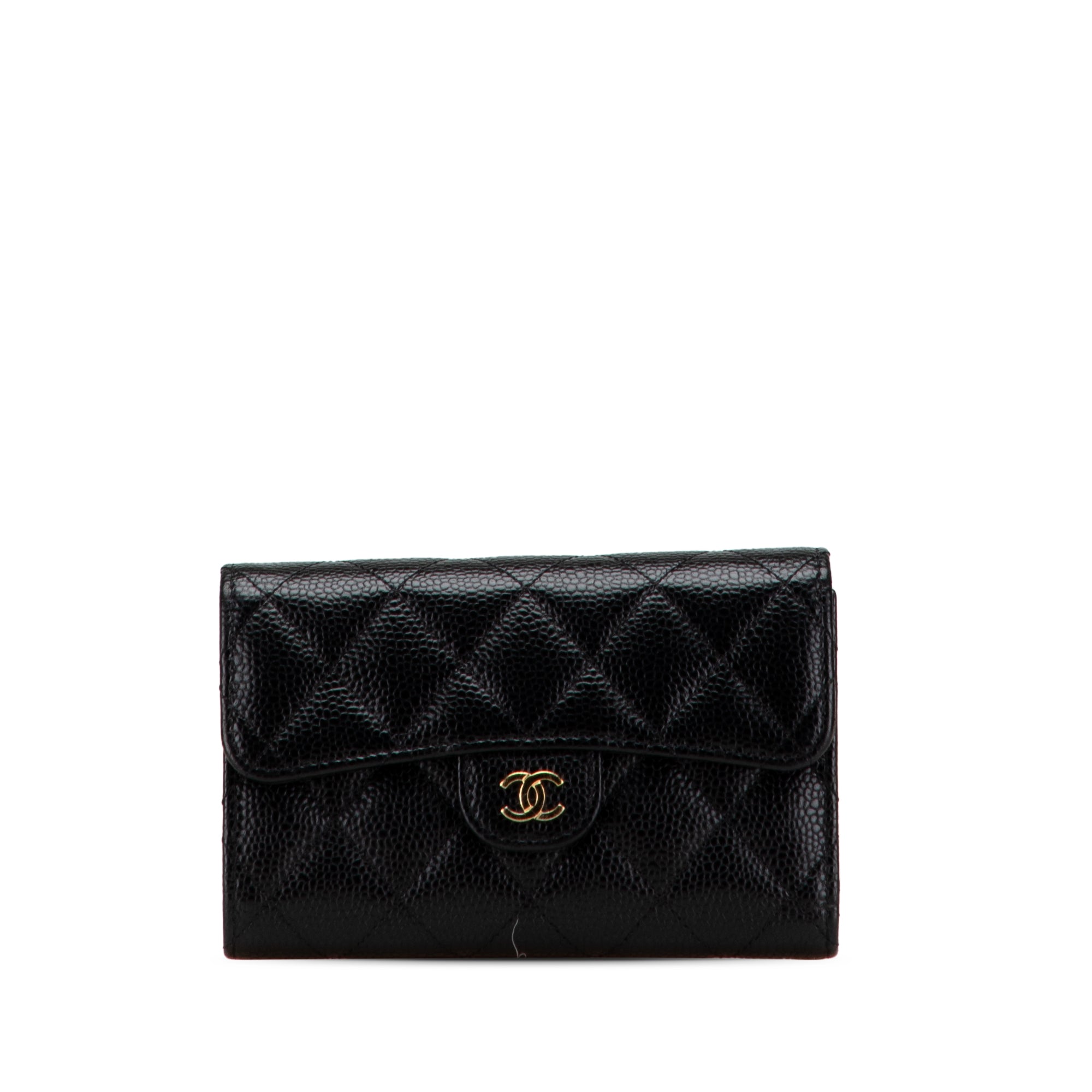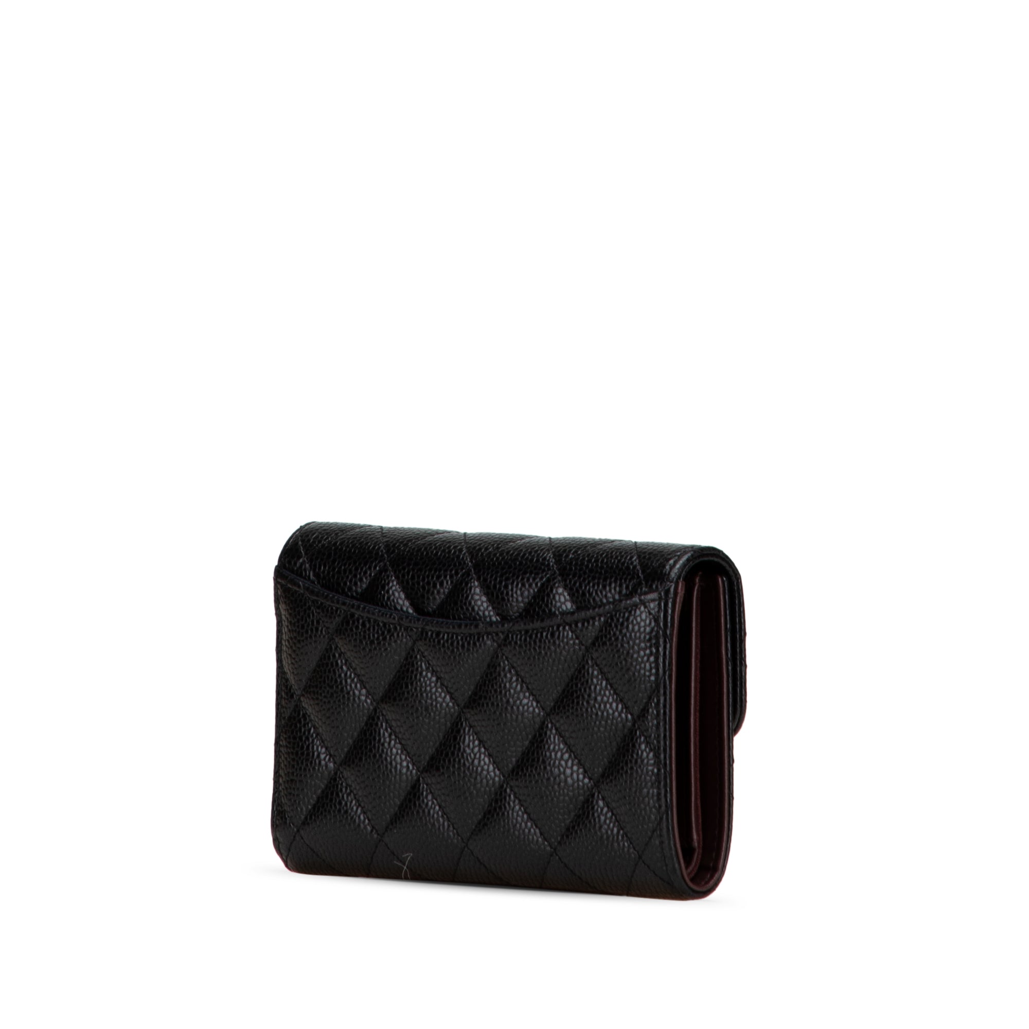 Black Chanel CC Quilted Caviar Trifold Flap Wallet - Designer Revival Black Chanel CC Quilted Caviar Trifold Flap Wallet - Designer Revival