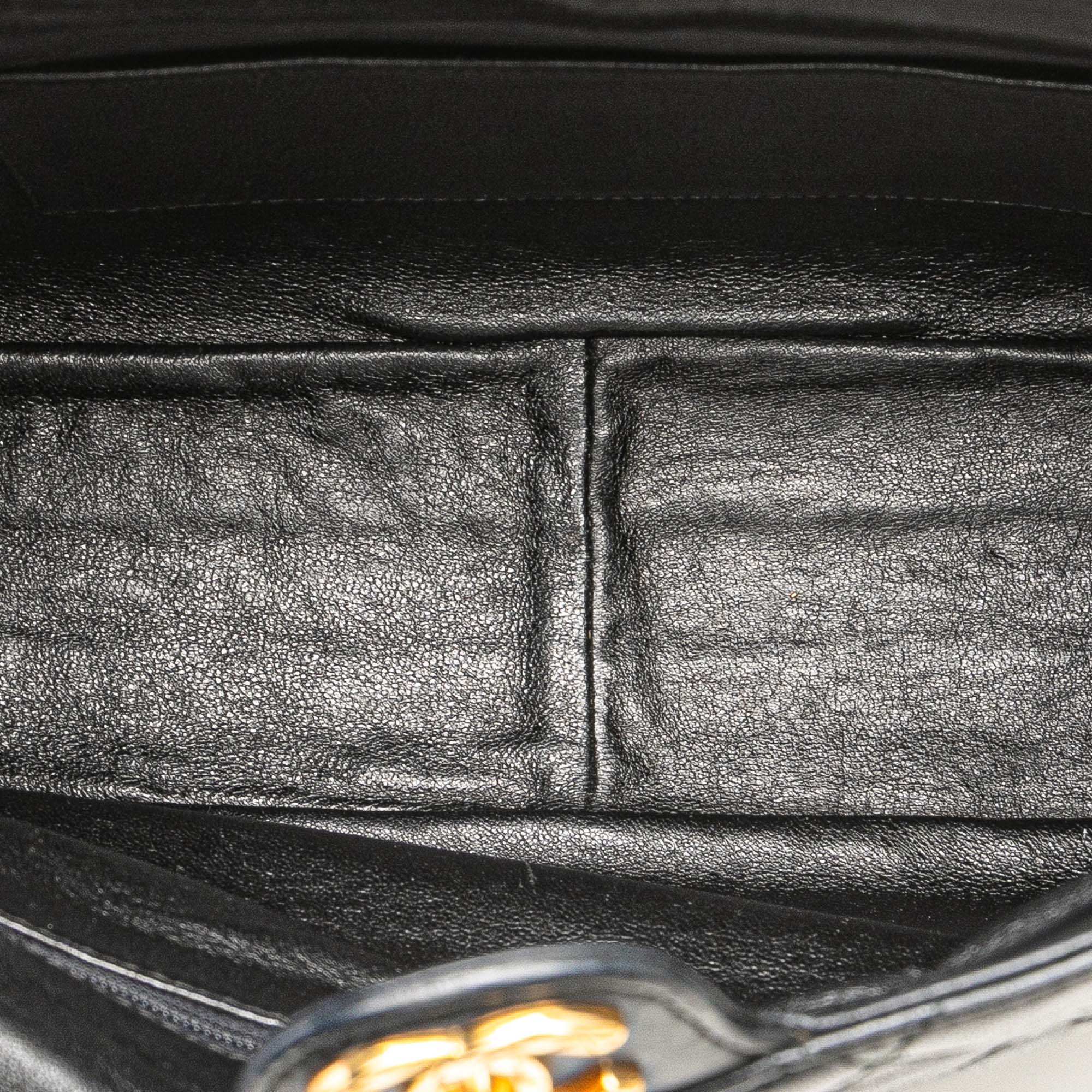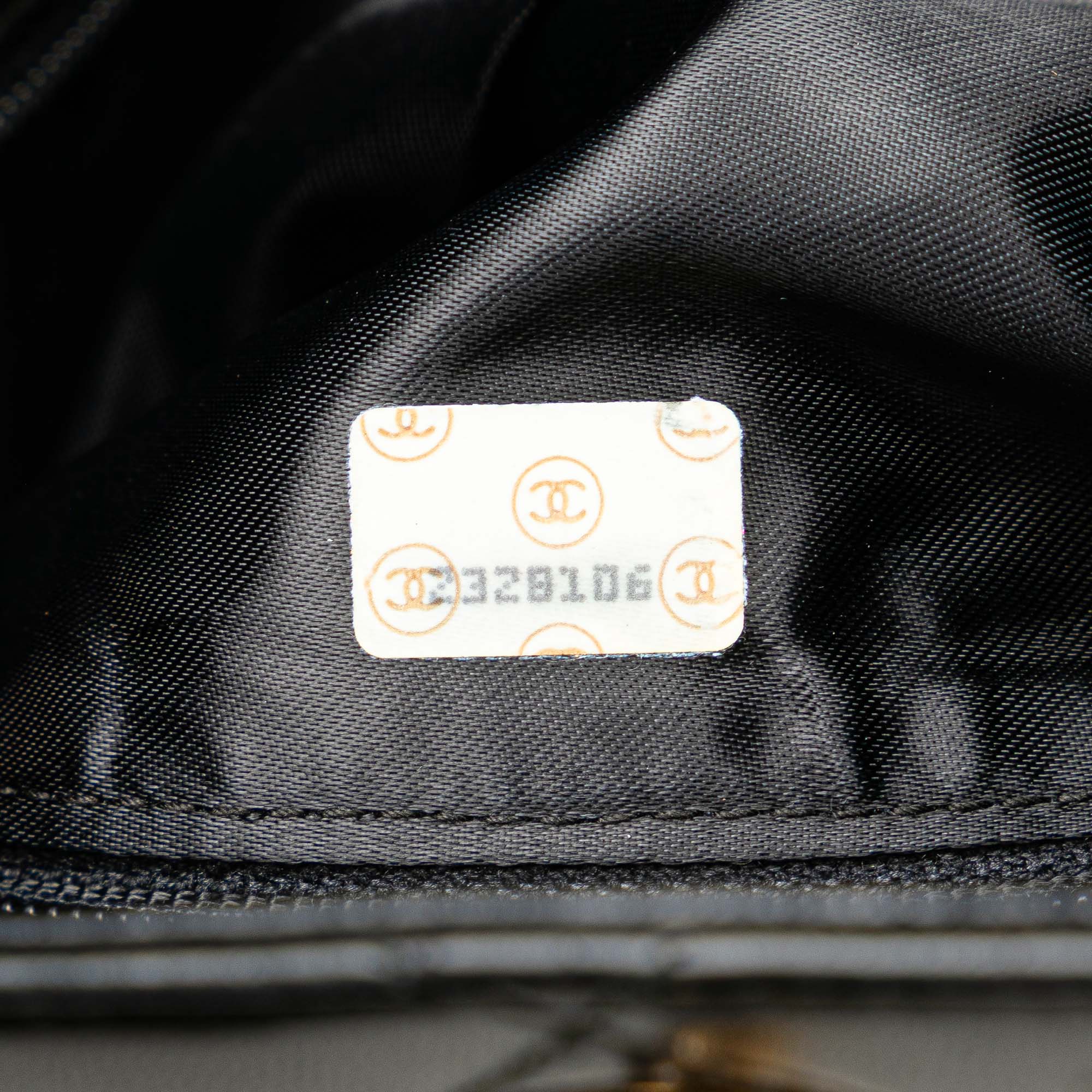 Product Details: Black Chanel CC Quilted Lambskin Crossbody. This crossbody bag features a quilted lambskin leather body, a flat leather shoulder strap, top fold over flap with CC turn lock closure, an exterior back slip compartment, and interior zip and slip pockets. 7.5" L x 9.4" W x 3.1" D. Serial number 2328106.