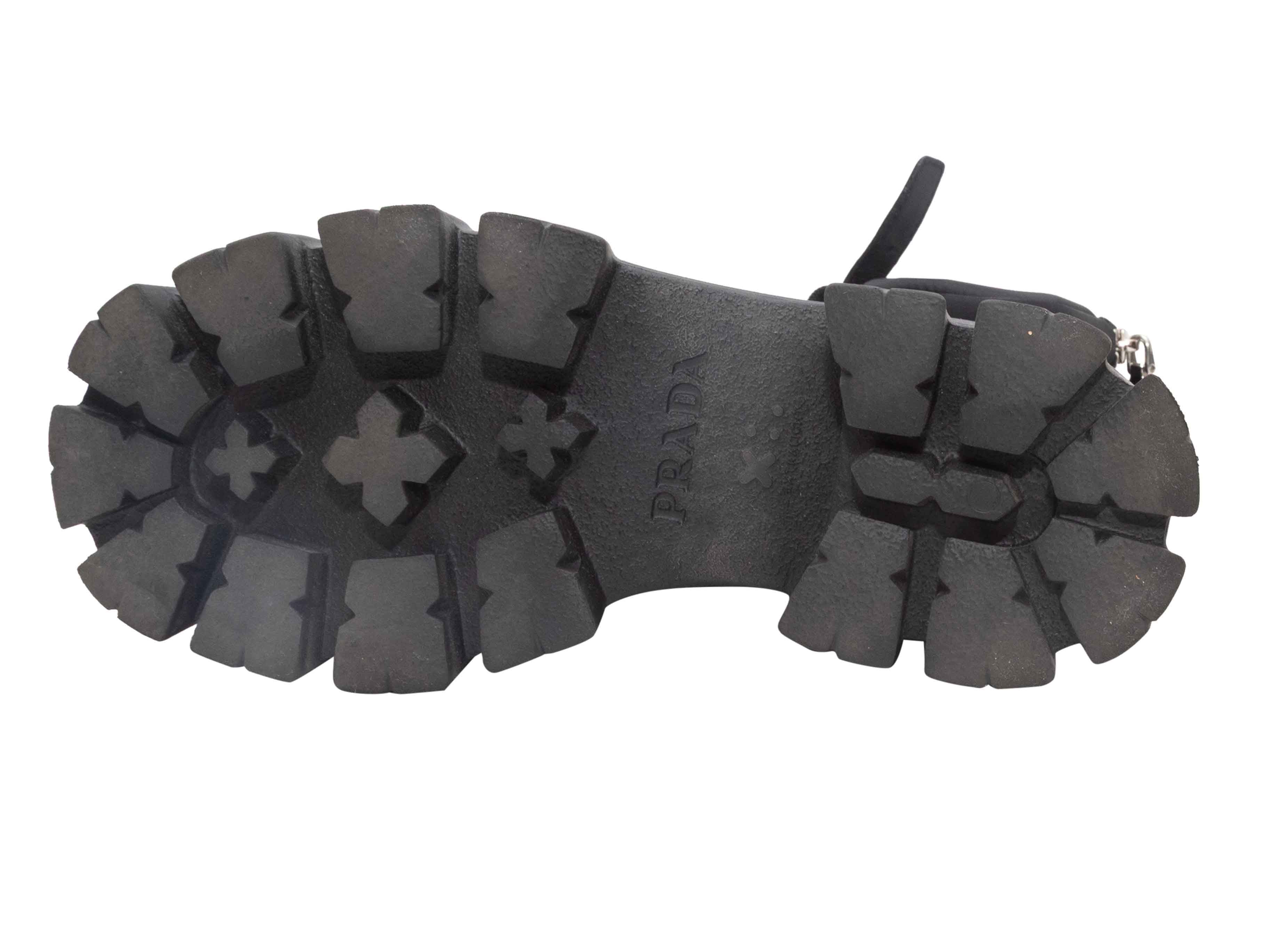 Black Prada Leather & Tessuto Combat Boots Size 38