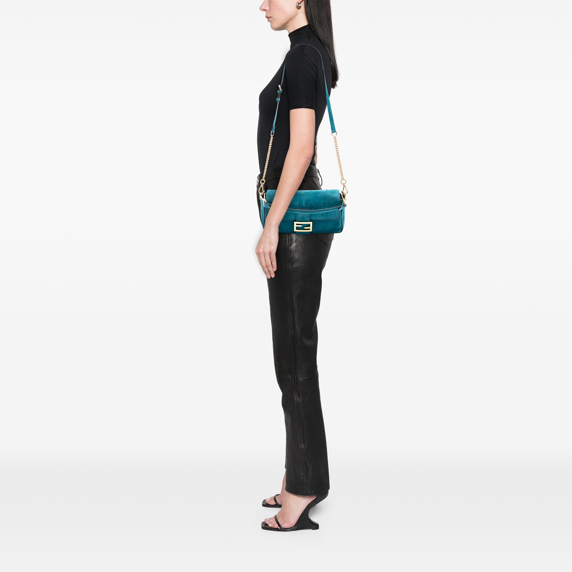 Please note this is a pre-owned item that may display signs of wear consistent with the condition listed above and shown in photos. Designer Revival guarantees this is an authentic Blue Fendi Medium Suede Baguette Satchel or 100% of your money back. Learn more about our authentication process.