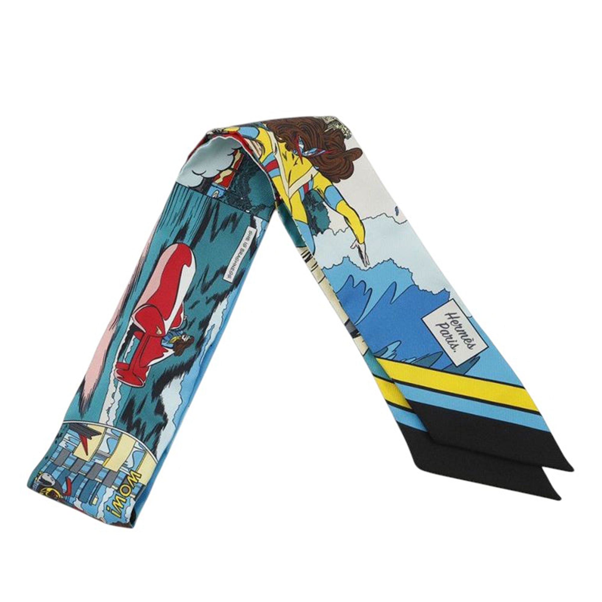 Blue Hermès Wow Silk Twilly Scarf Scarves