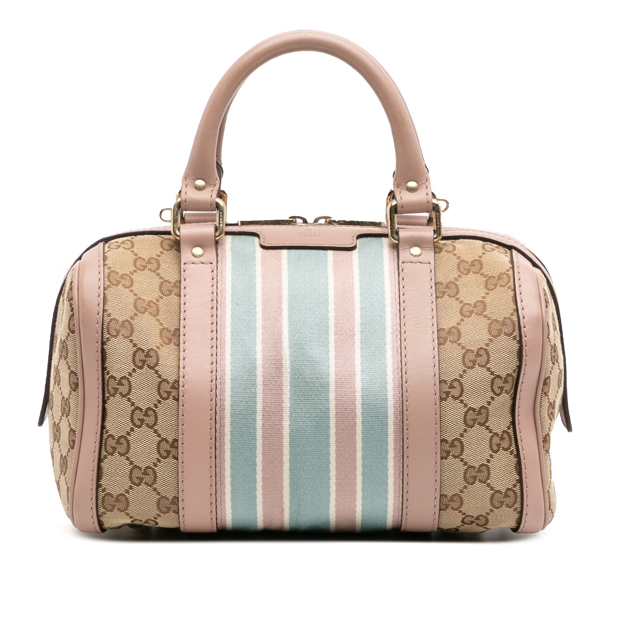 Please note this is a pre-owned item that may display signs of wear consistent with the condition listed above and shown in photos. Designer Revival guarantees this is an authentic Brown Gucci Small GG Canvas Web Joy Boston Bag Satchel or 100% of your money back. Learn more about our authentication process.