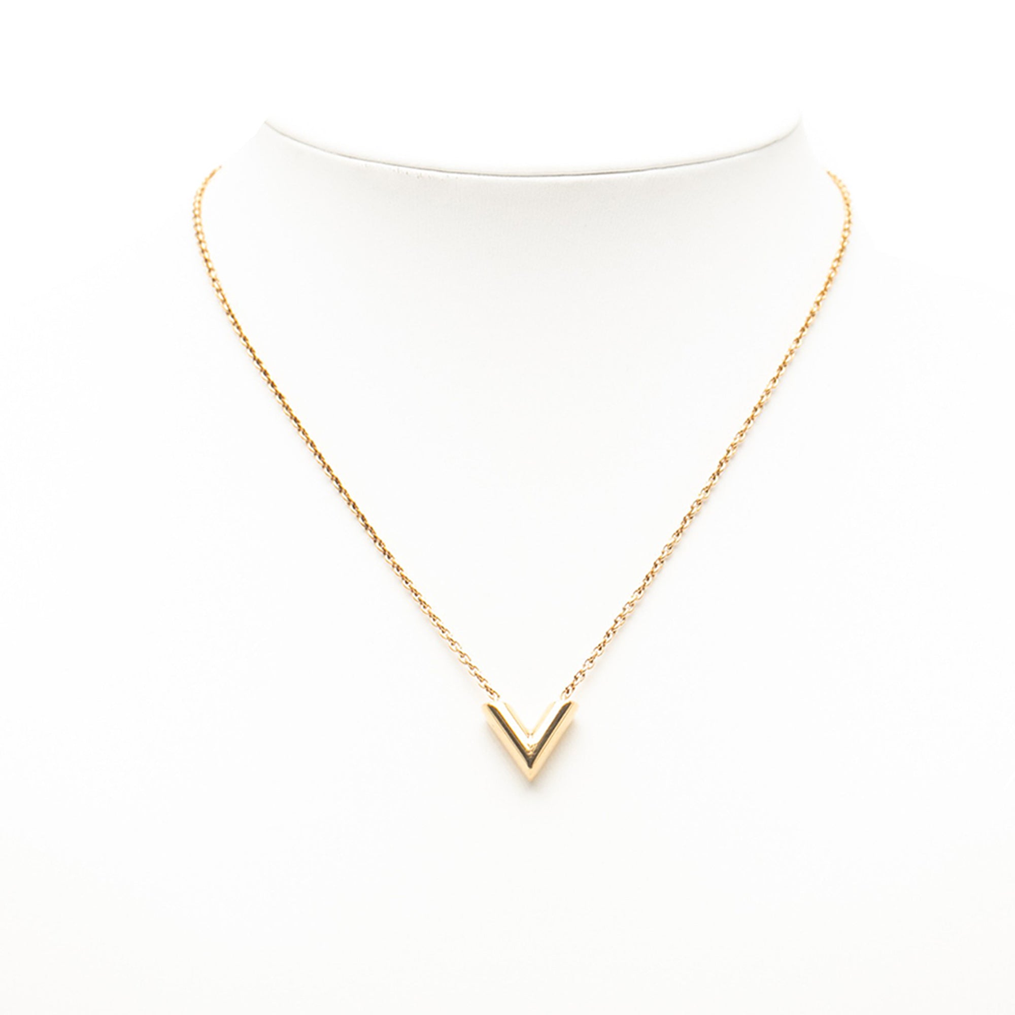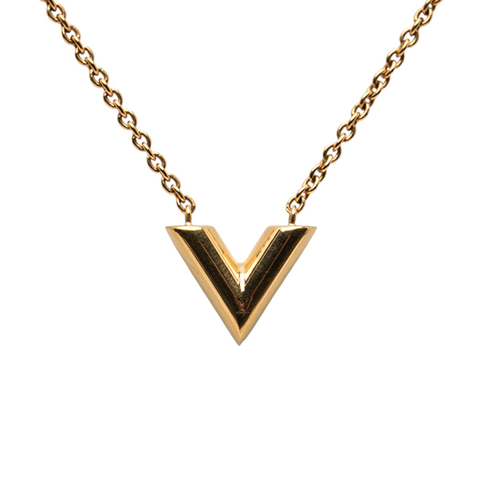Please note this is a pre-owned item that may display signs of wear consistent with the condition listed above and shown in photos. Designer Revival guarantees this is an authentic Gold Louis Vuitton Gold Plated Essential V Necklace or 100% of your money back. Learn more about our authentication process.