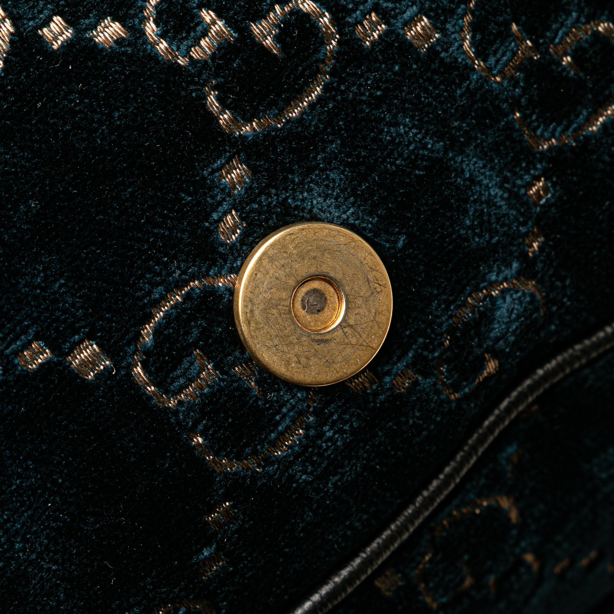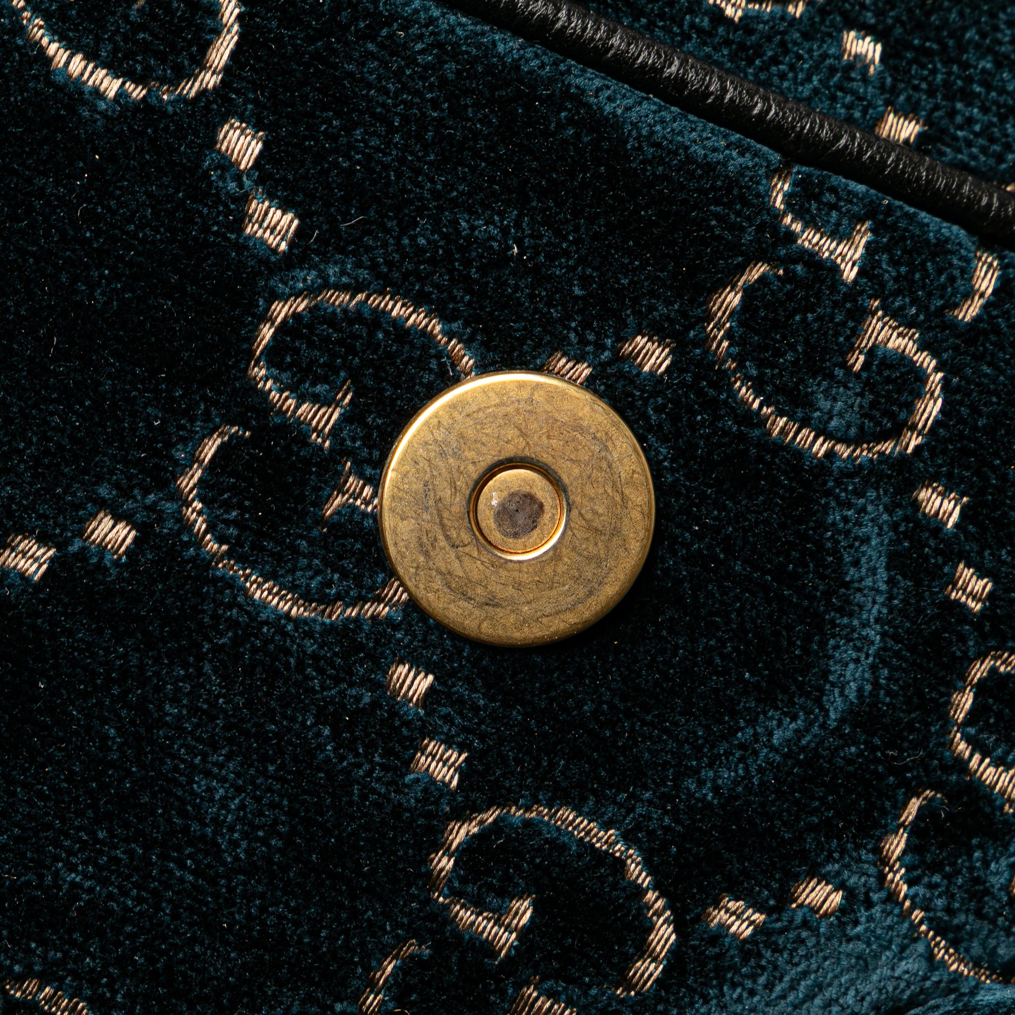 Product Details: Blue Gucci GG Velvet Double Buckle Backpack. This backpack features a velvet body with leather trim, flat back straps, a front flap with buckle closures, a top zip closure, an exterior front zip pocket, and an interior slip pocket. 14.2" L x 11.2" W x 5.7" D, 2.4" drop. Serial number 574942 213317.
