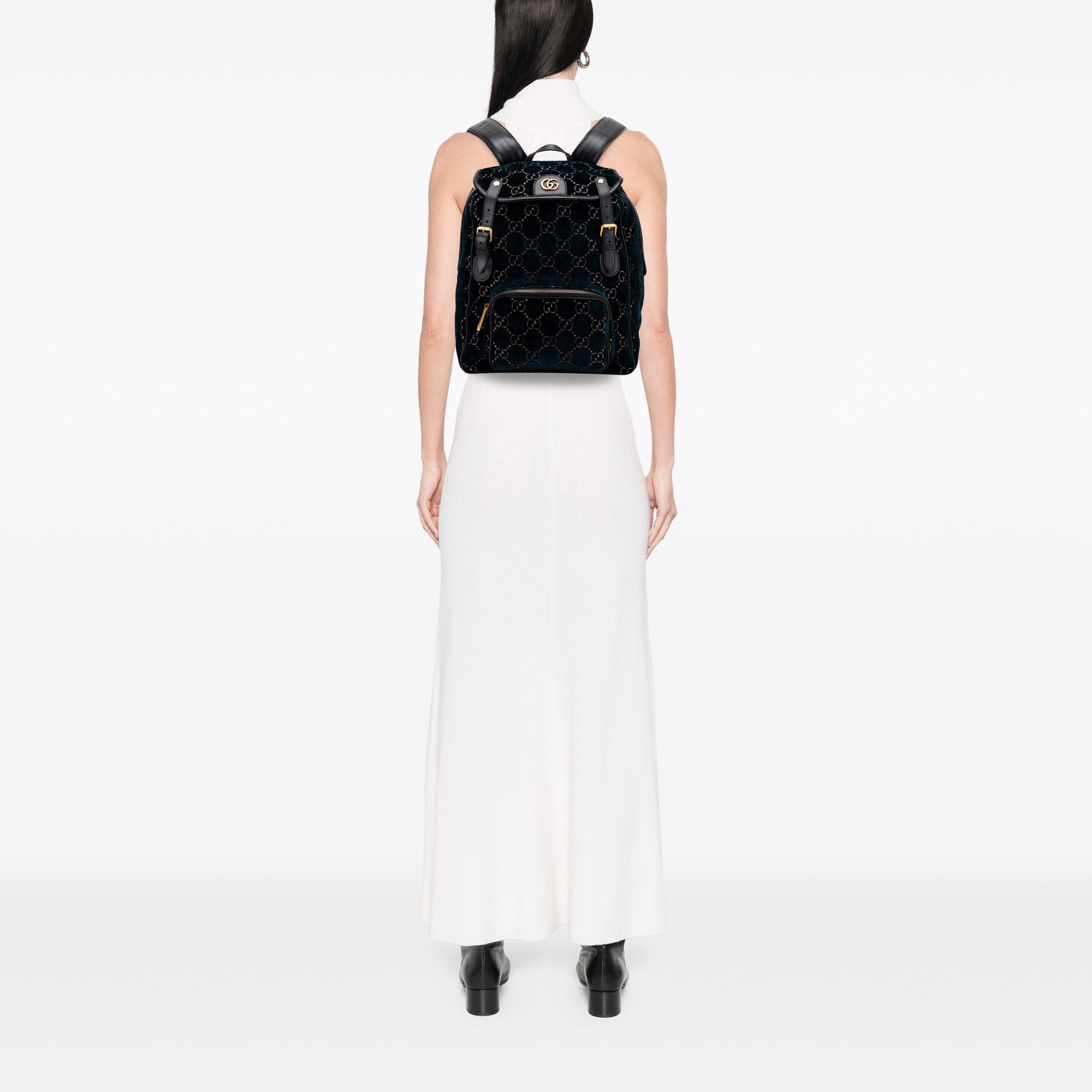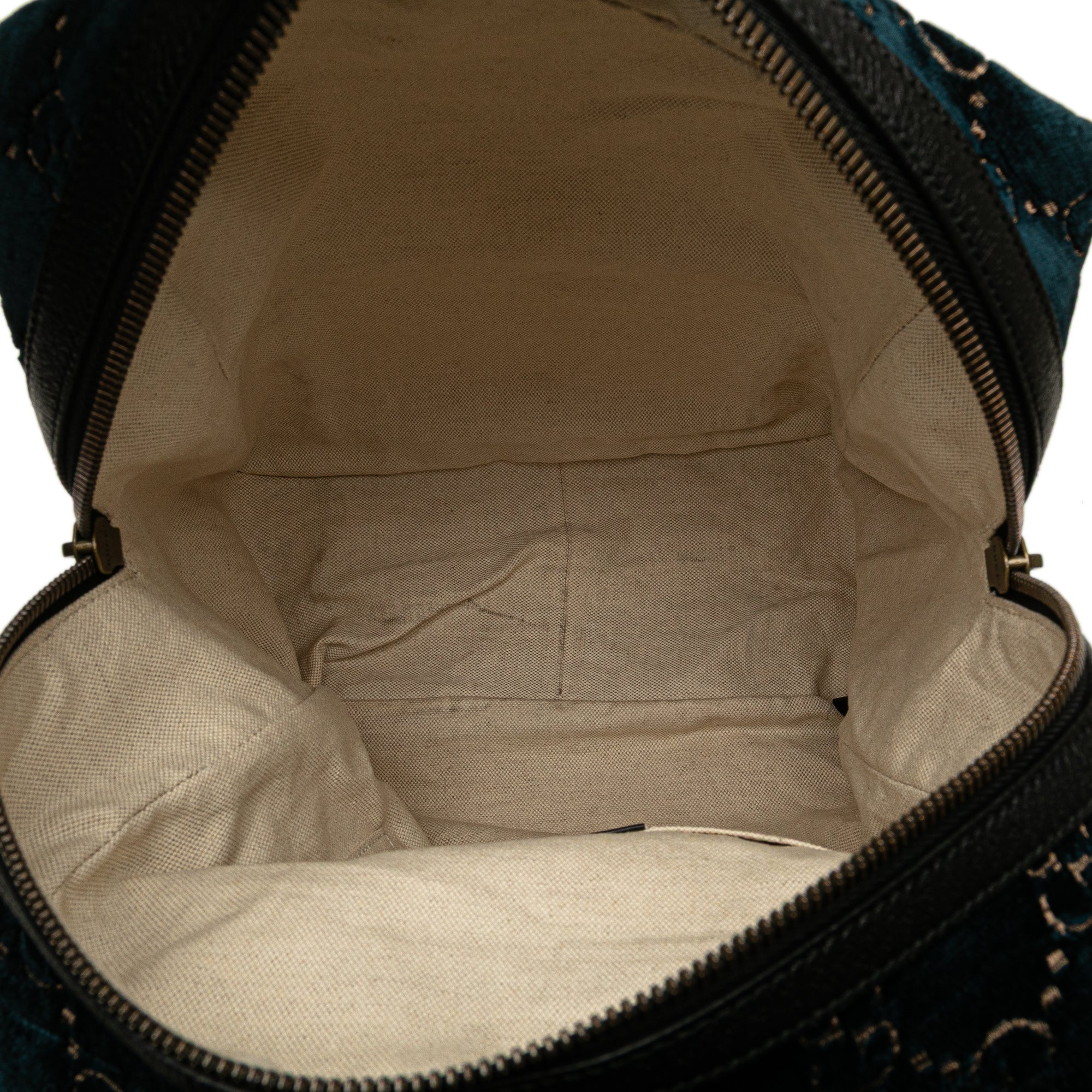 Blue Gucci GG Velvet Double Buckle Backpack - Designer Revival Blue Gucci GG Velvet Double Buckle Backpack - Designer Revival
