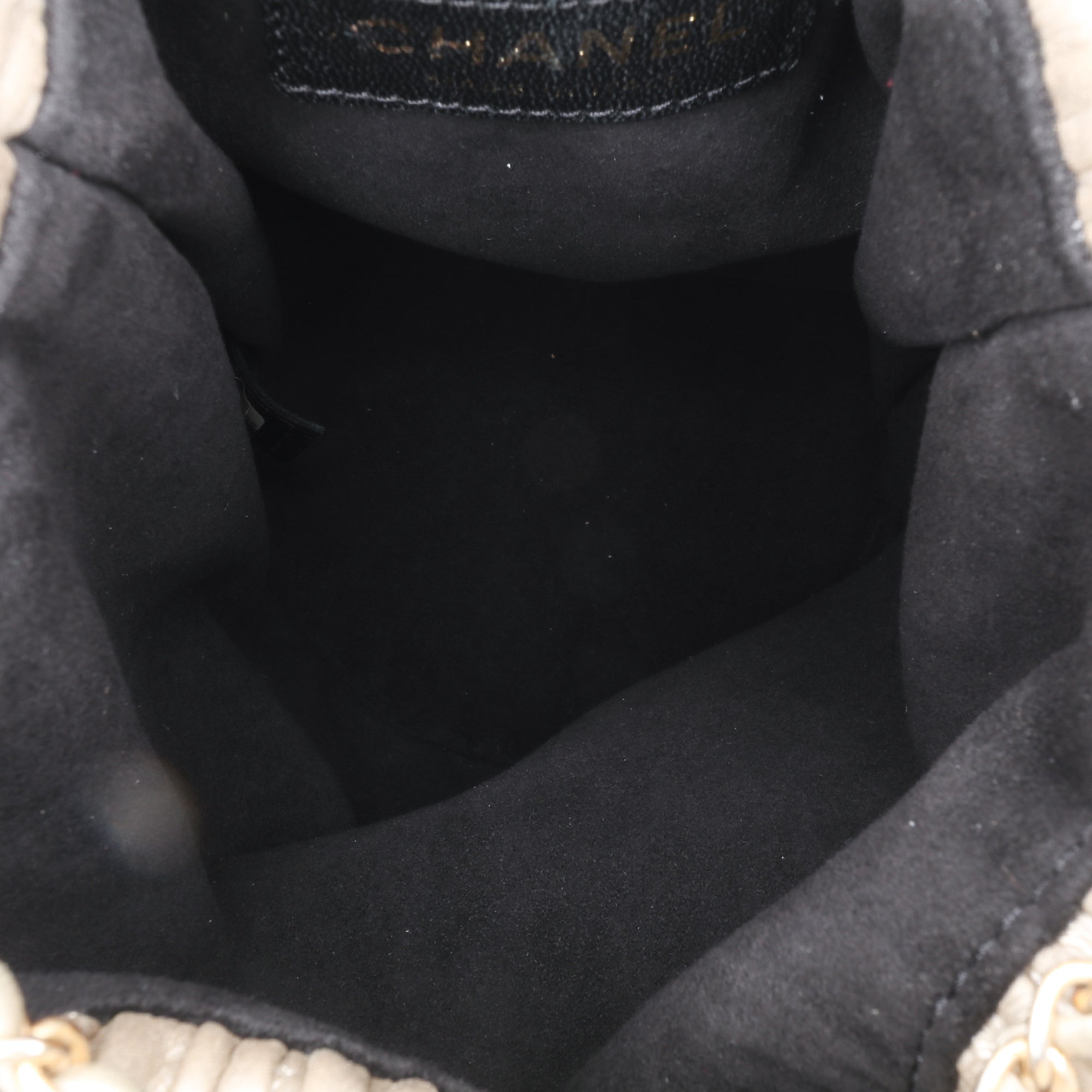 Please note this is a pre-owned item that may display signs of wear consistent with the condition listed above and shown in photos. Designer Revival guarantees this is an authentic Gold Chanel Small Metallic Calfskin Coco Pleats Drawstring Backpack or 100% of your money back. Learn more about our authentication process.