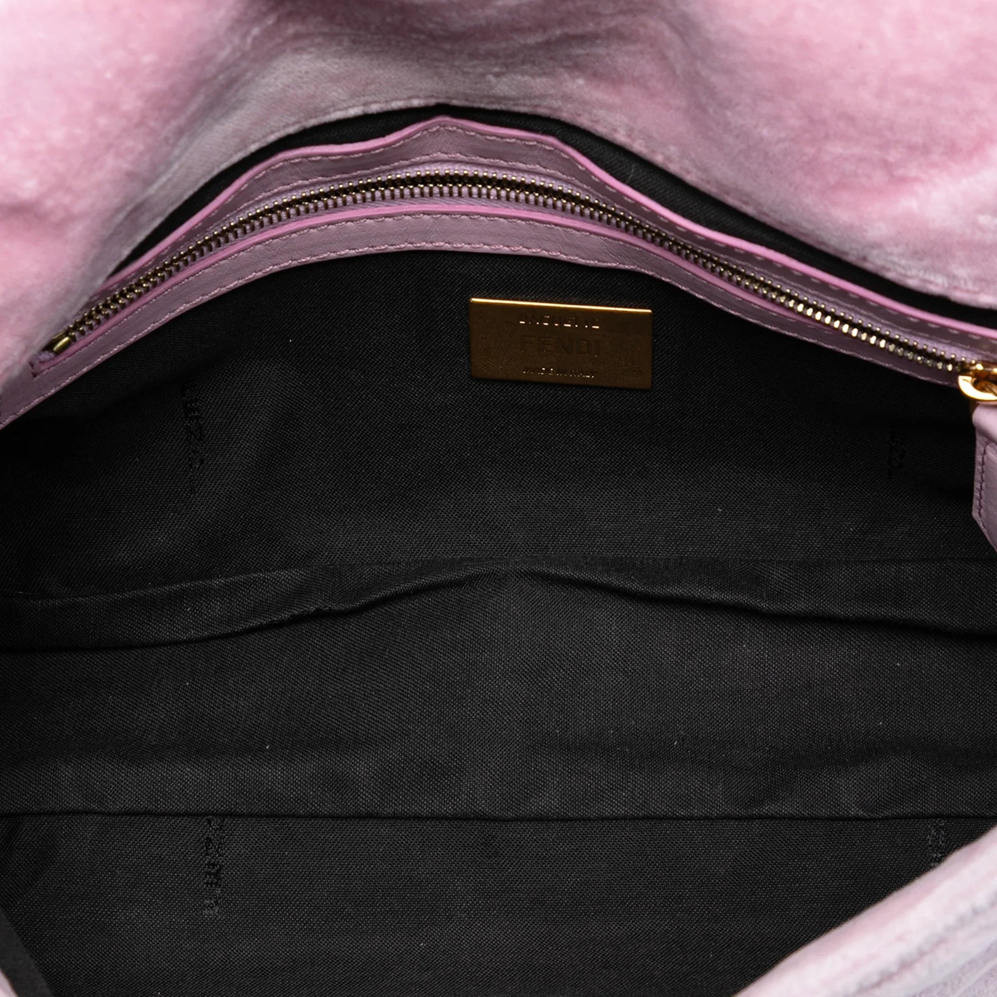 Pink Fendi Zucca Embossed Velvet Baguette Satchel