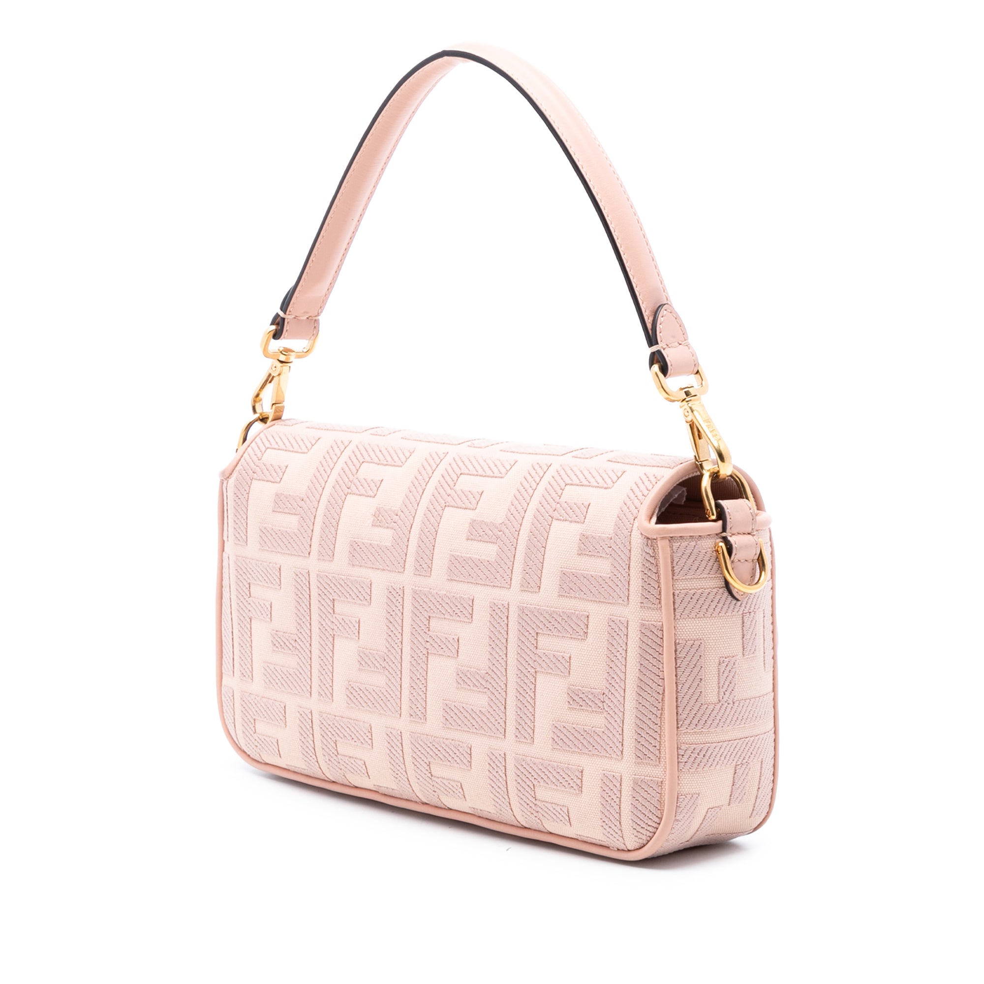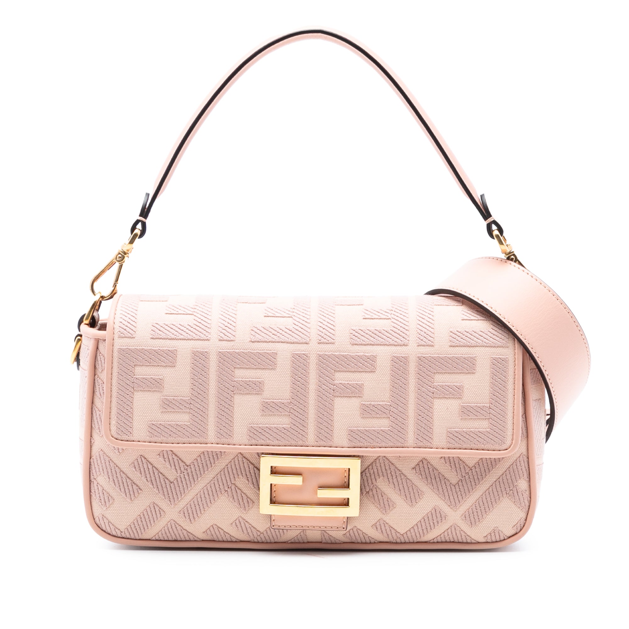 Pink Fendi Zucca Embroidered Canvas Baguette Satchel