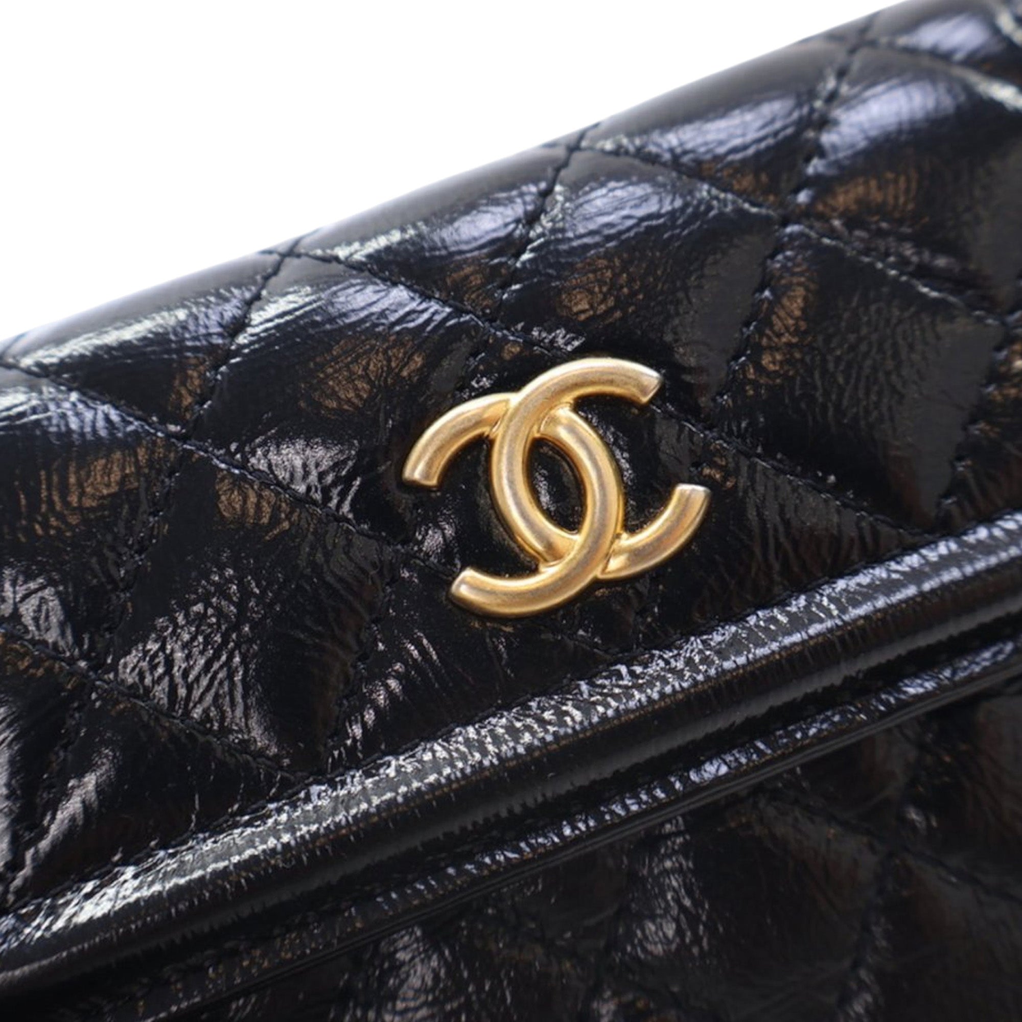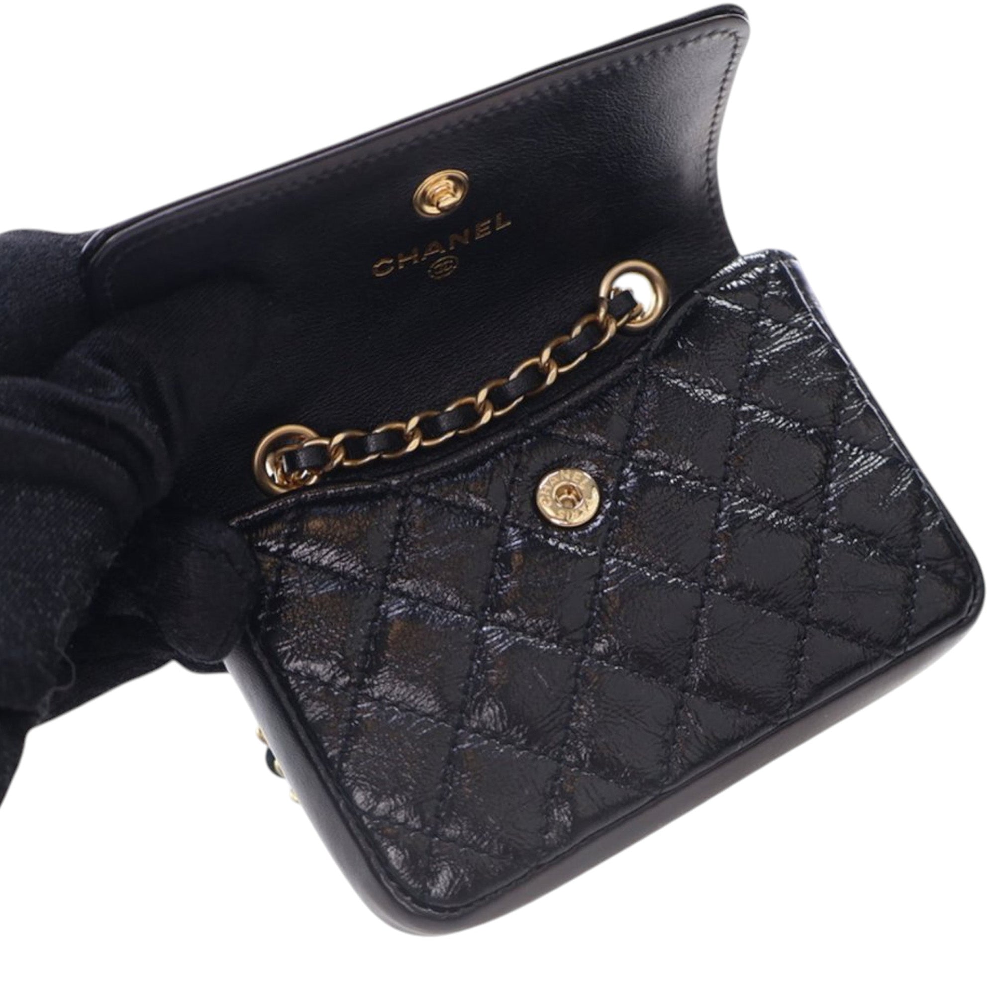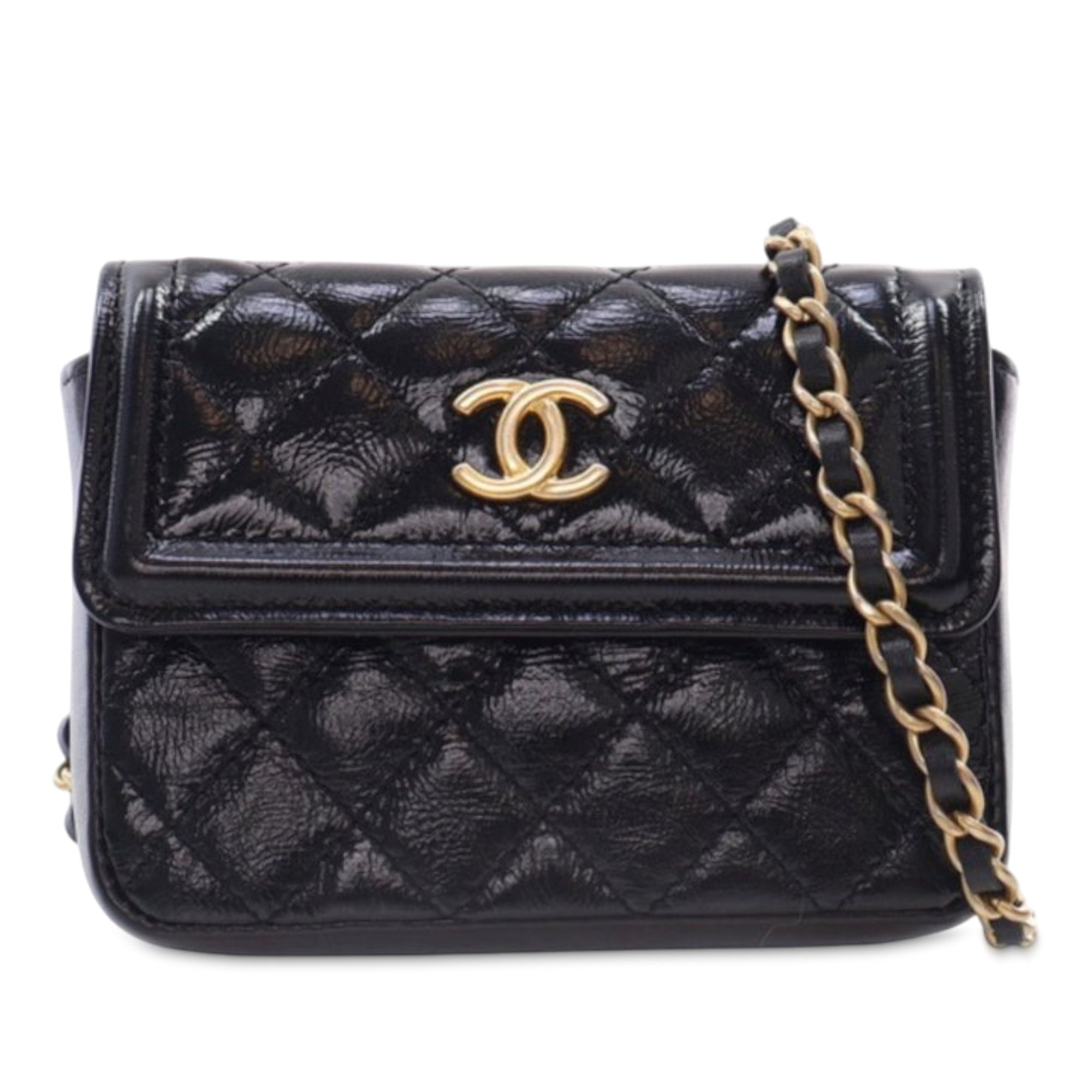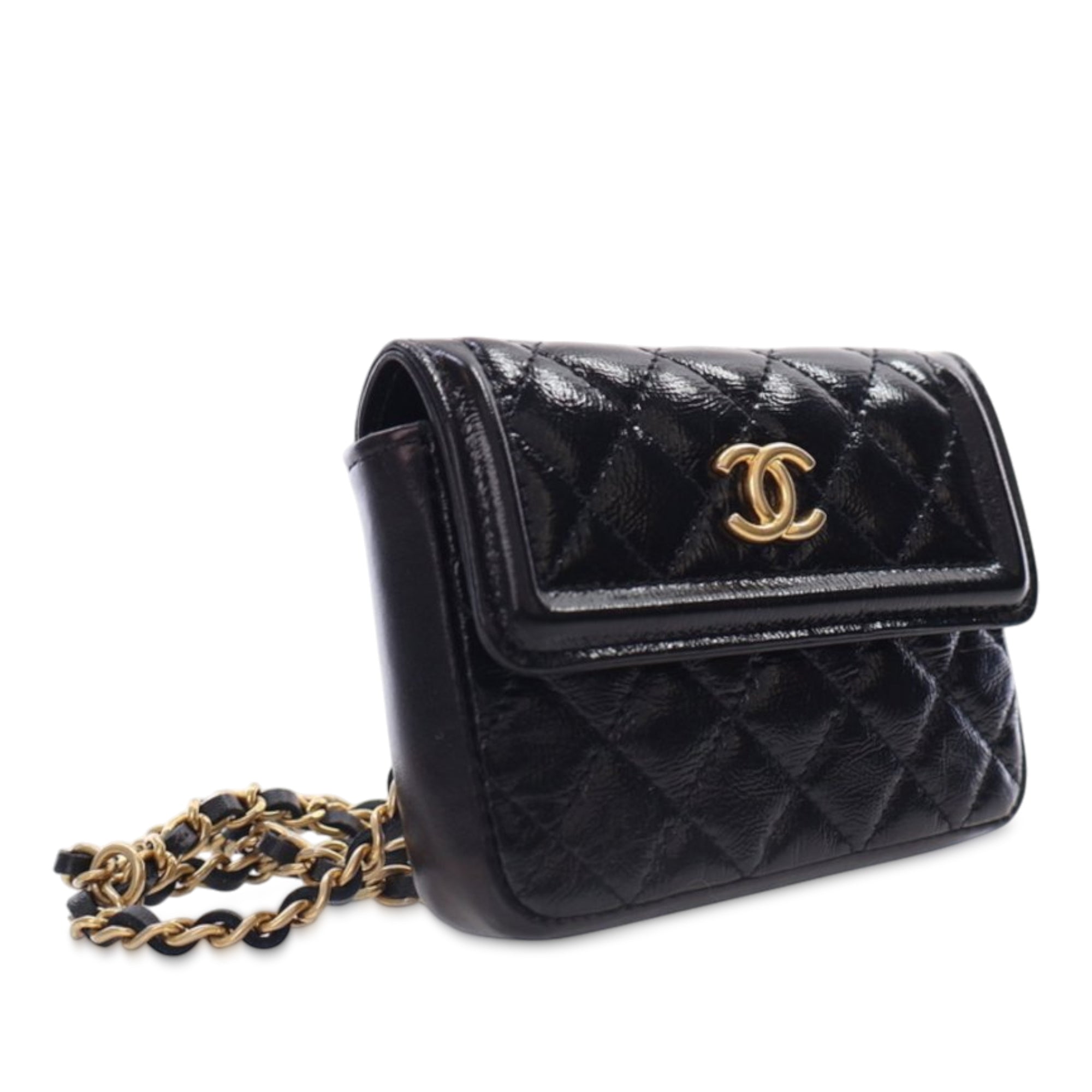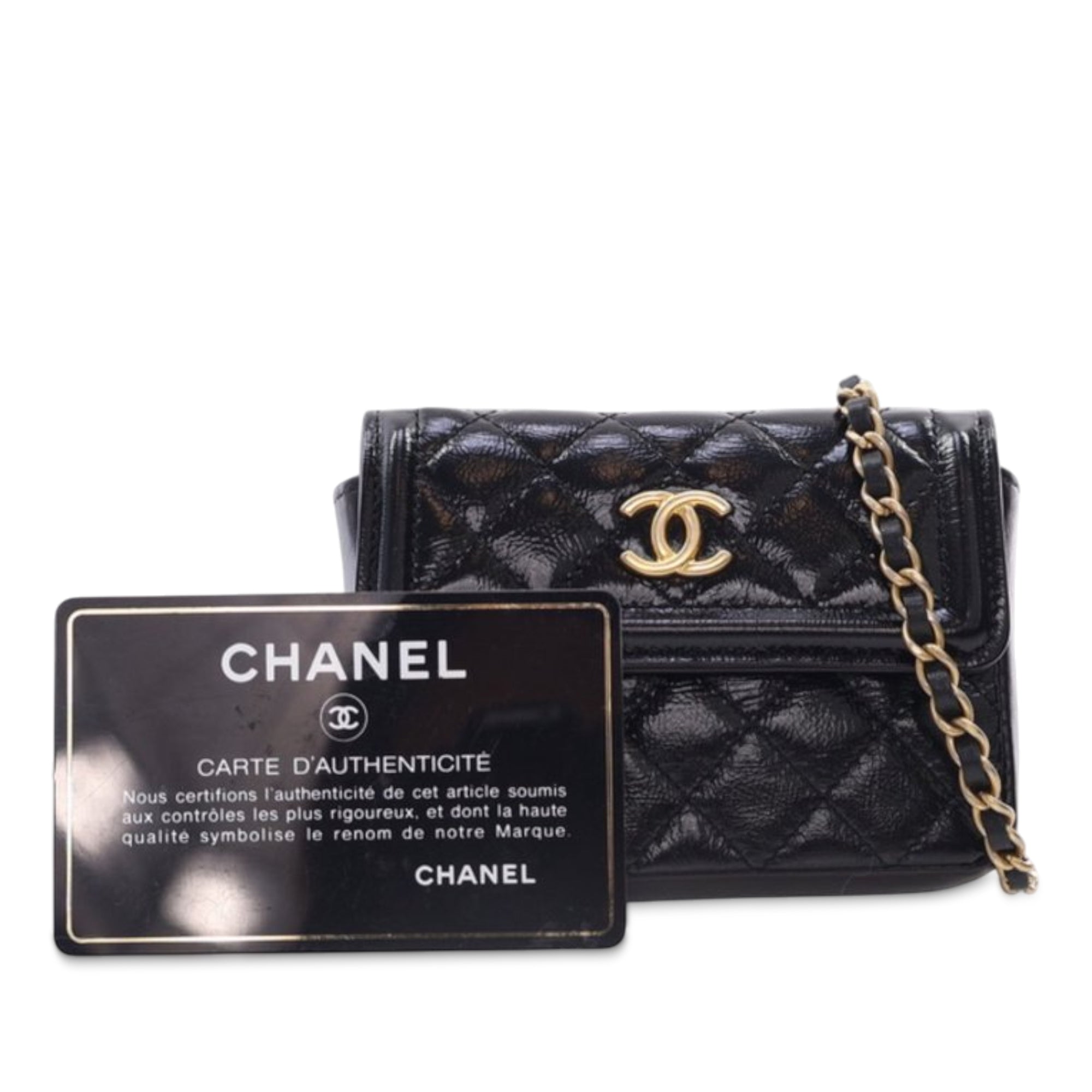 Black Chanel Quilted Shiny Aged Calfskin Waist Belt Bag