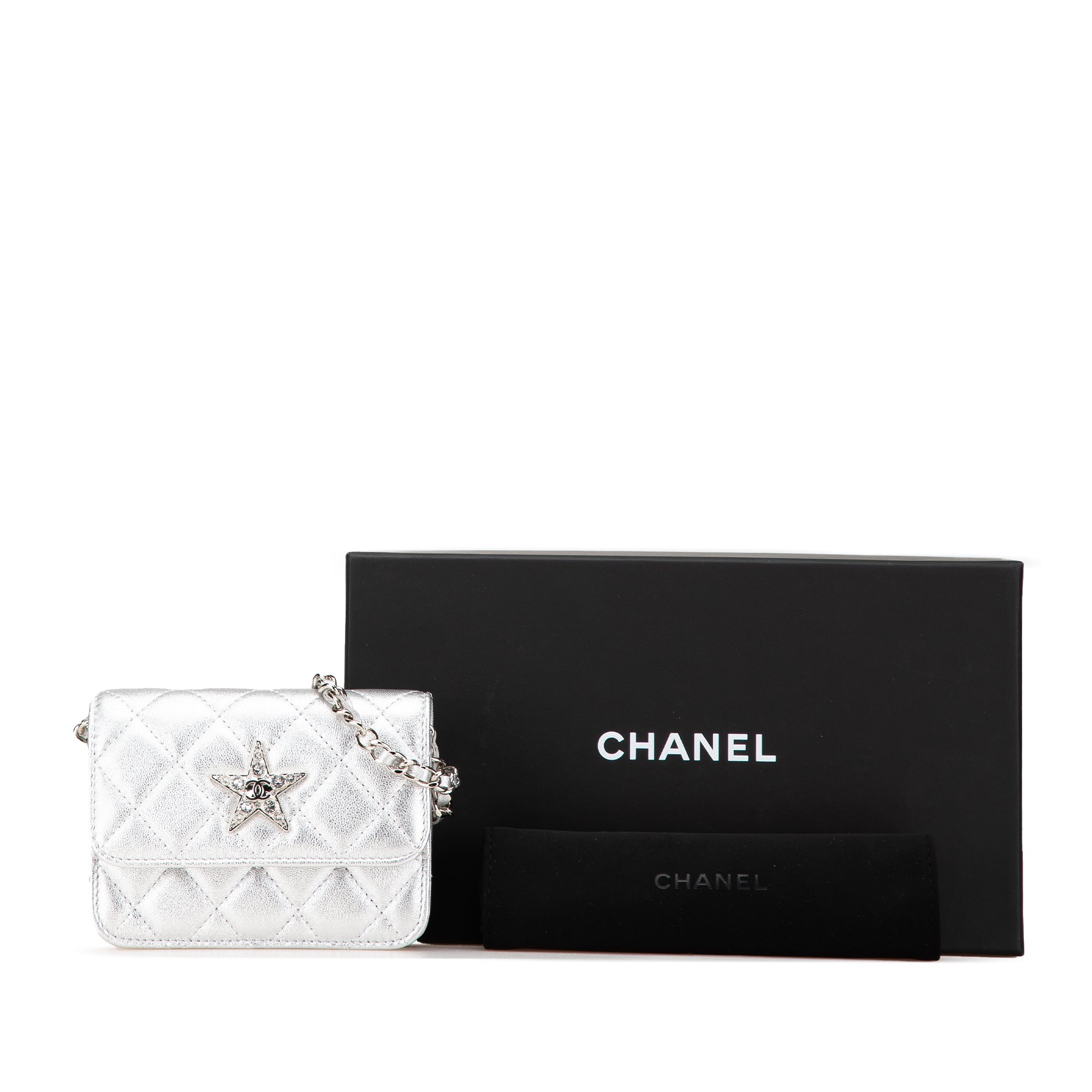 Silver Chanel Metallic Lambskin Crystal Star Chain Belt Bag
