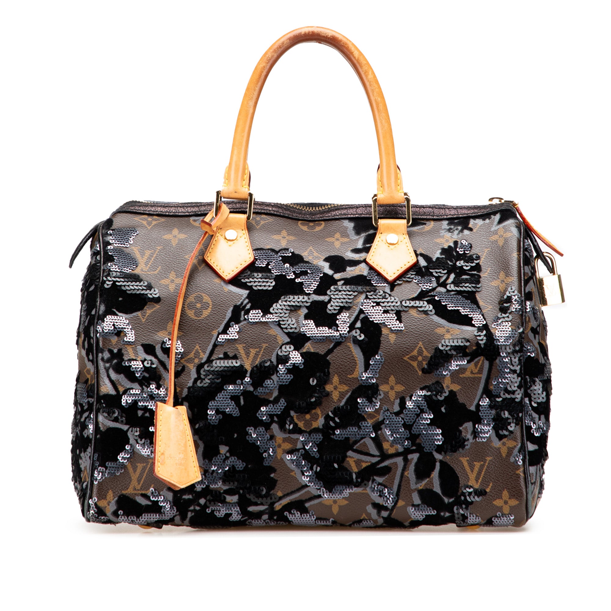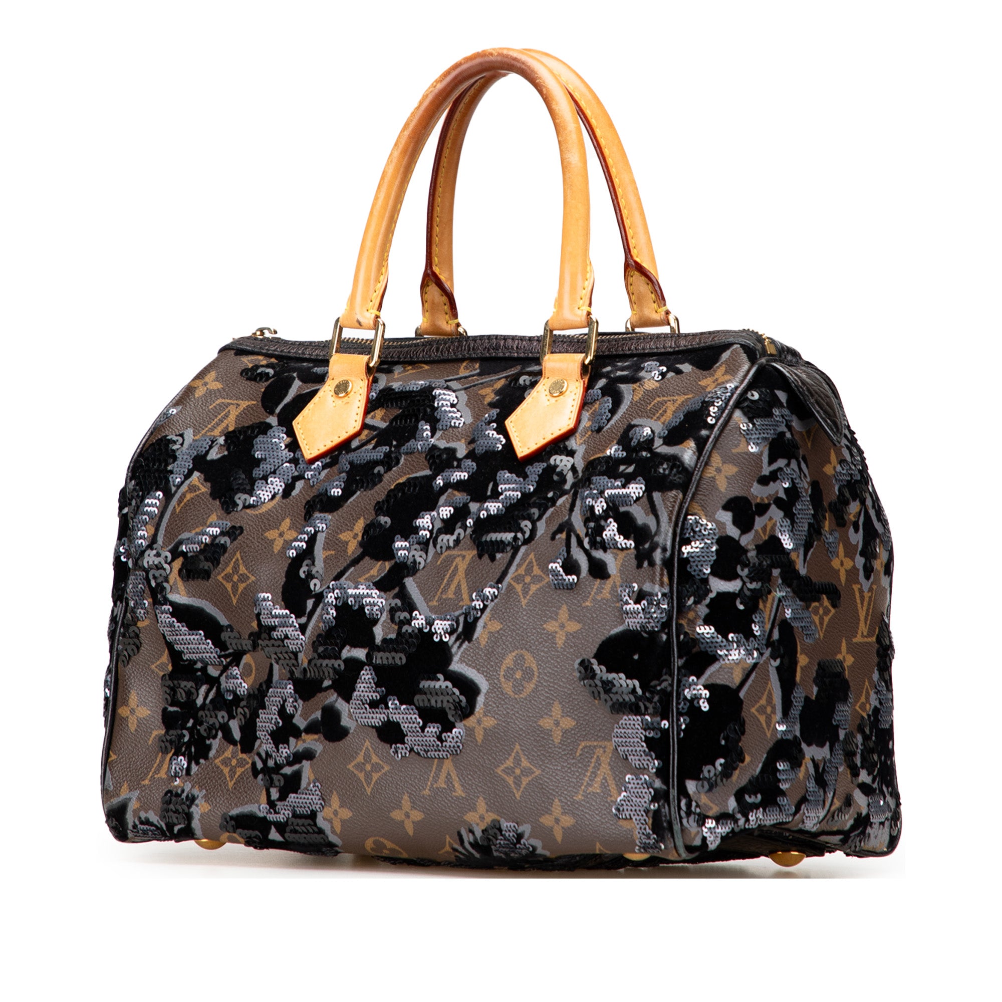 Brown Louis Vuitton Monogram Fleur De Jais Sequins Speedy 30 Boston Bag - Designer Revival Brown Louis Vuitton Monogram Fleur De Jais Sequins Speedy 30 Boston Bag - Designer Revival