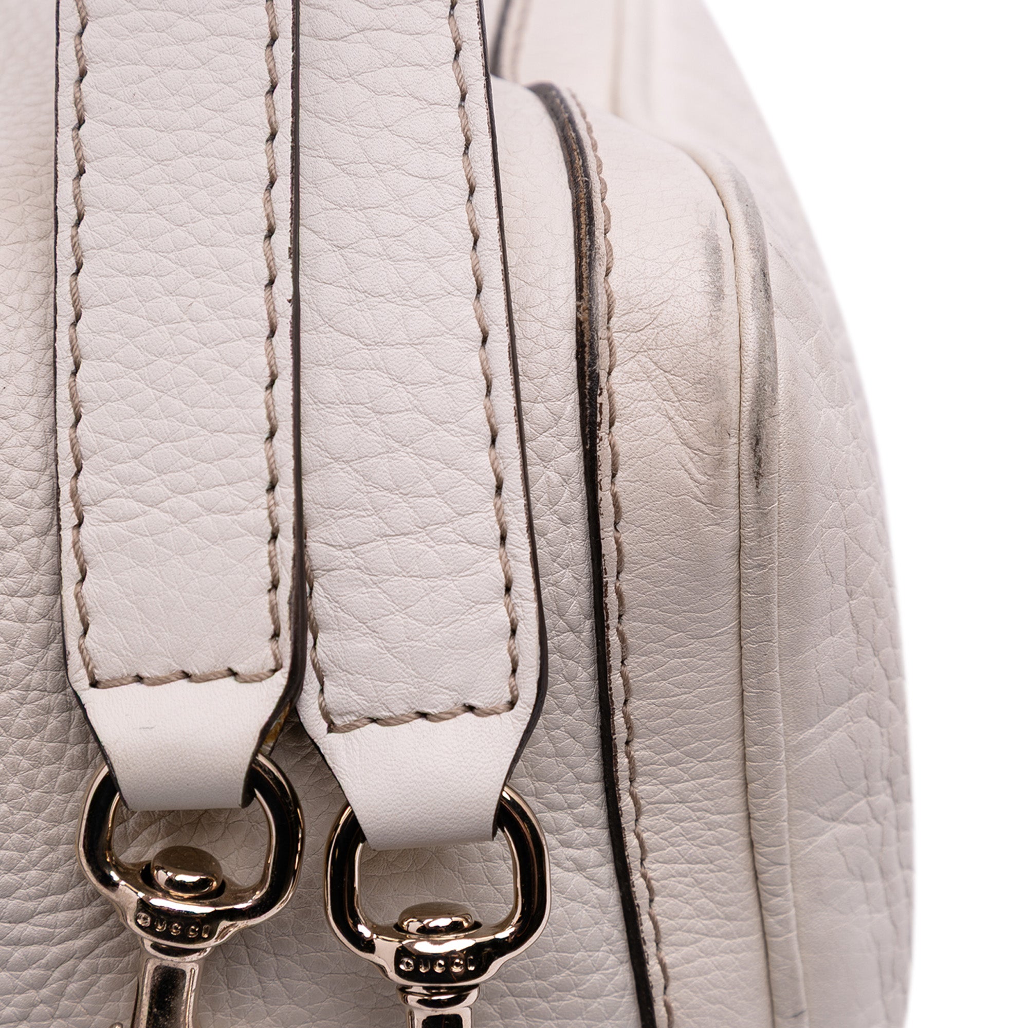 Please note this is a pre-owned item that may display signs of wear consistent with the condition listed above and shown in photos. Designer Revival guarantees this is an authentic White Gucci Medium Calfskin Web Joy Boston Bag Satchel or 100% of your money back. Learn more about our authentication process.