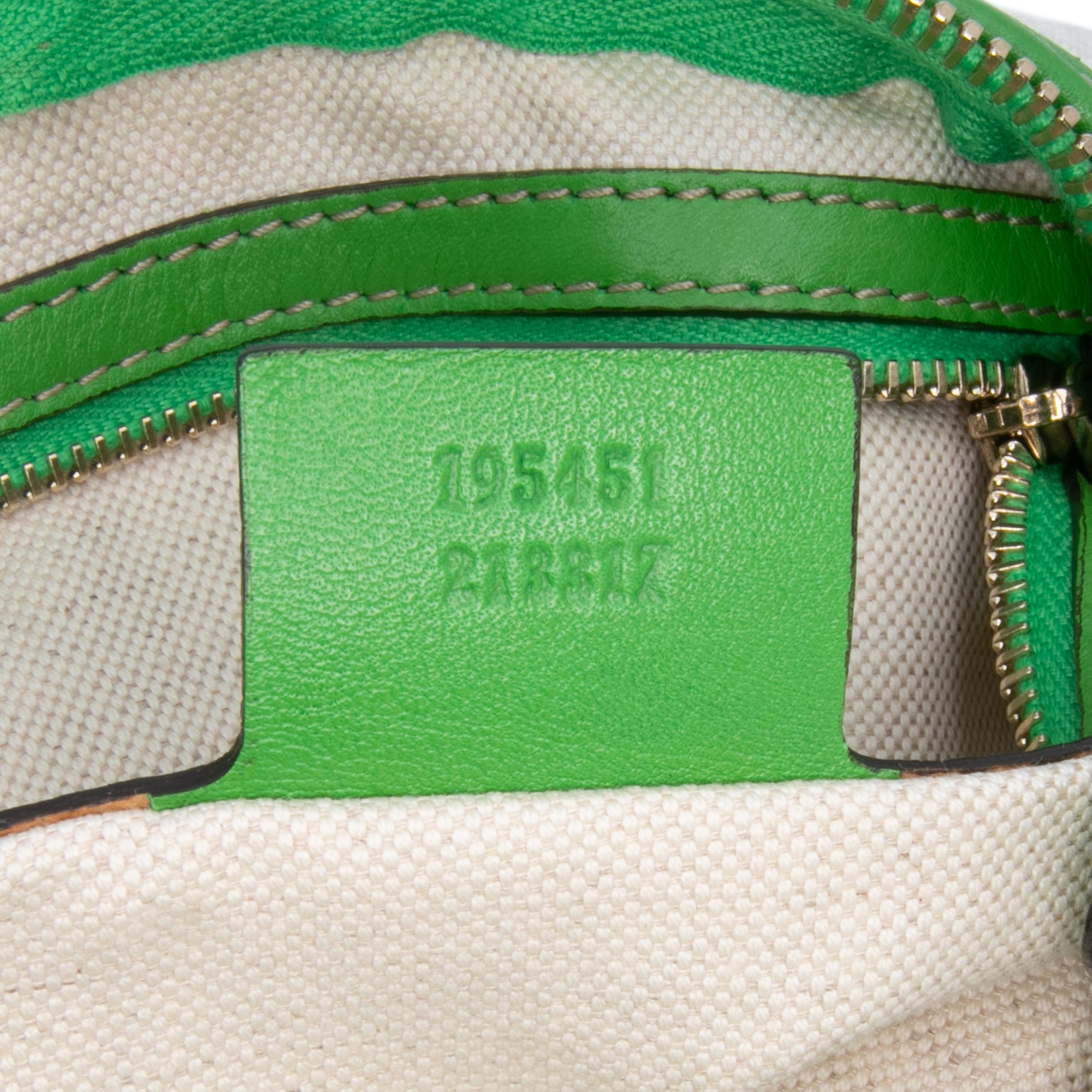 Product Details: White Gucci Medium GG Supreme Brazilian Flag Joy Boston Bag. This boston bag features a coated canvas body with leather trim, rolled leather handles, a top zip closure, and an interior slip pocket. 8.7" L x 13" W x 7.1" D, 5.5" drop. Serial number 195451 213317.