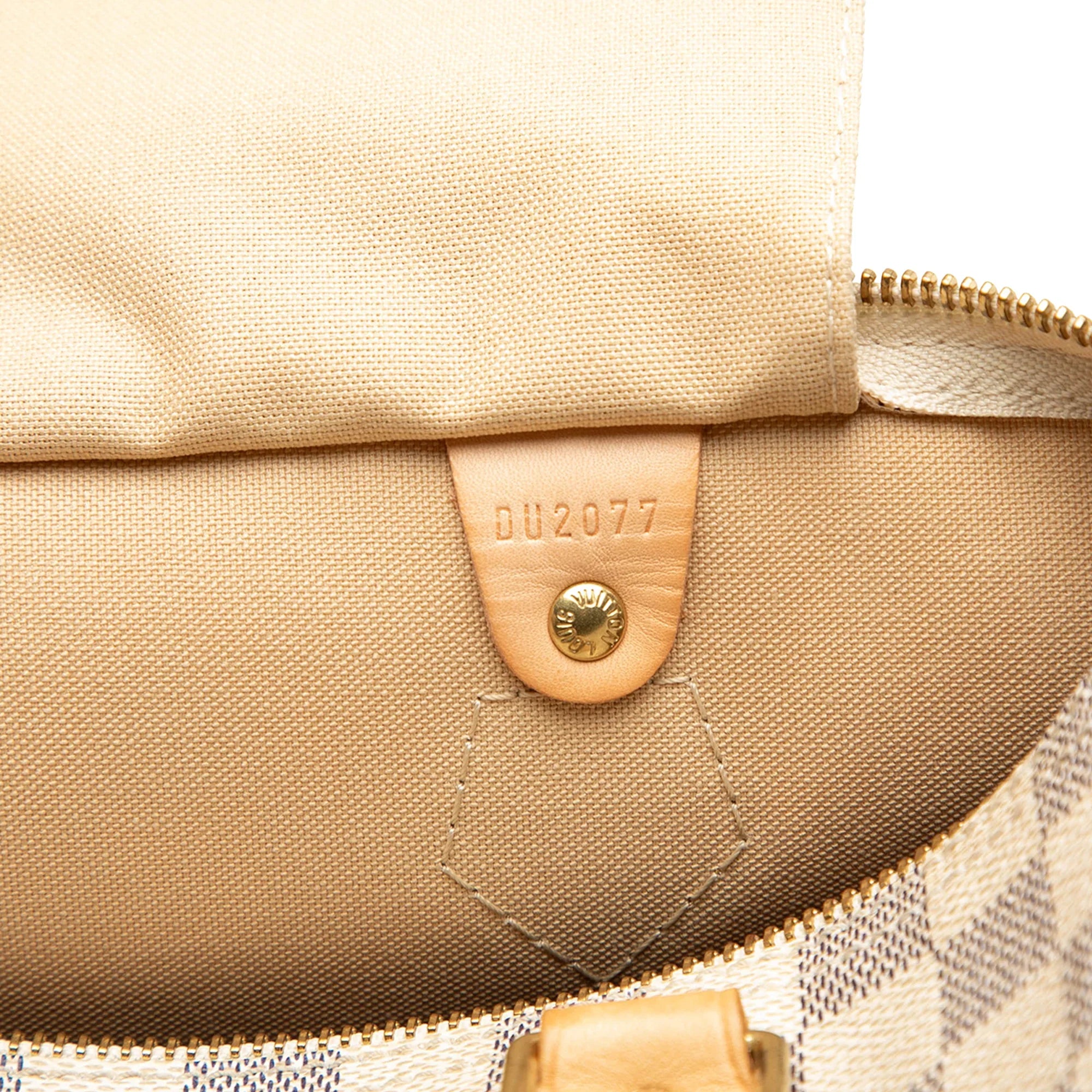 Please note this is a pre-owned item that may display signs of wear consistent with the condition listed above and shown in photos. Designer Revival guarantees this is an authentic White Louis Vuitton Damier Azur Speedy 30 Boston Bag or 100% of your money back. Learn more about our authentication process.