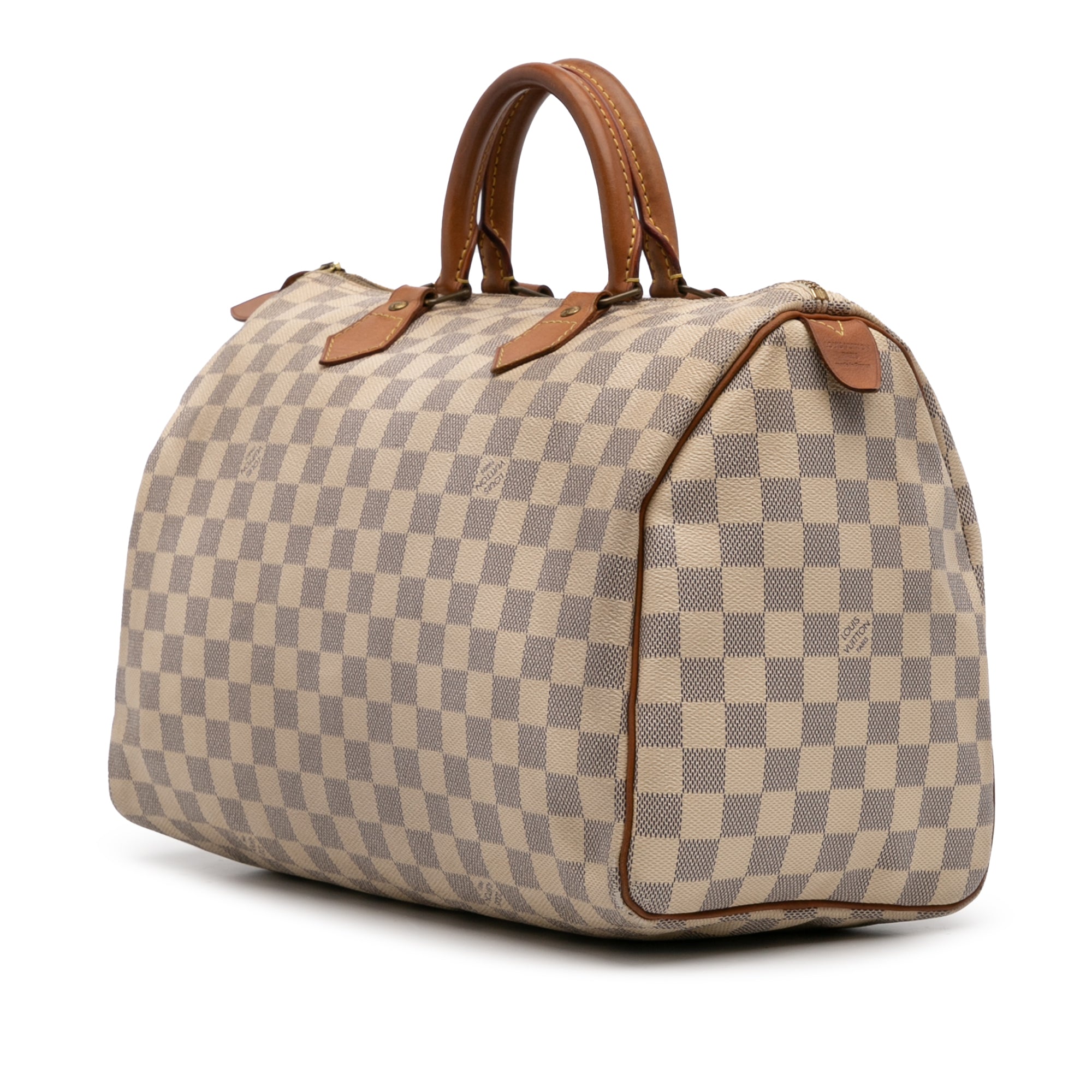 Please note this is a pre-owned item that may display signs of wear consistent with the condition listed above and shown in photos. Designer Revival guarantees this is an authentic White Louis Vuitton Damier Azur Speedy 35 Boston Bag or 100% of your money back. Learn more about our authentication process.