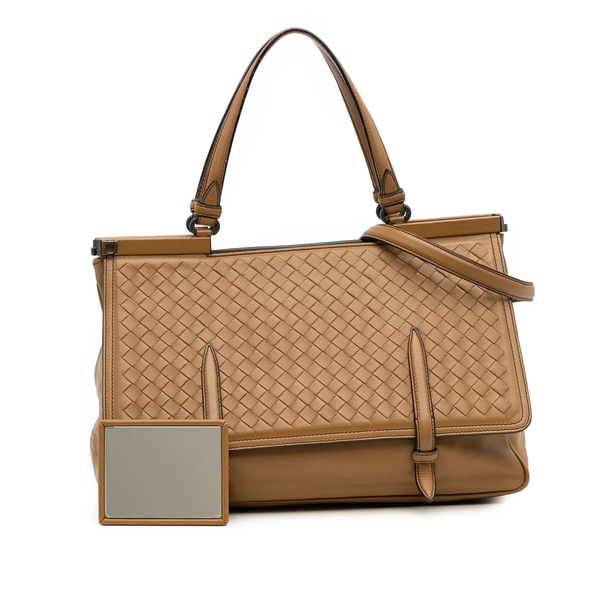 Brown Bottega Veneta Medium Nappa Intrecciato Monaco Satchel