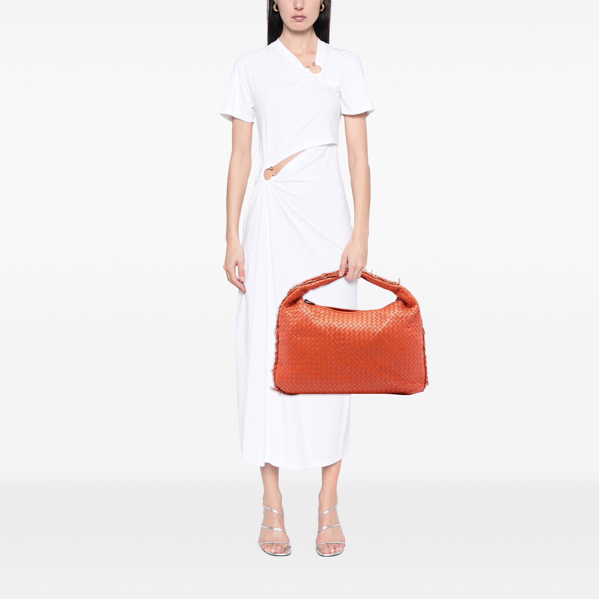 Orange Bottega Veneta Medium Nappa Intrecciato Fuzzy Veneta Hobo
