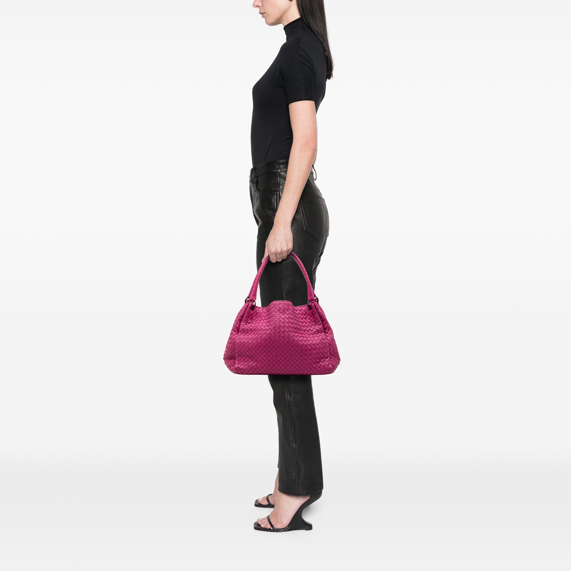 Please note this is a pre-owned item that may display signs of wear consistent with the condition listed above and shown in photos. Designer Revival guarantees this is an authentic Pink Bottega Veneta Nappa Intrecciato Parachute Tote or 100% of your money back. Learn more about our authentication process.