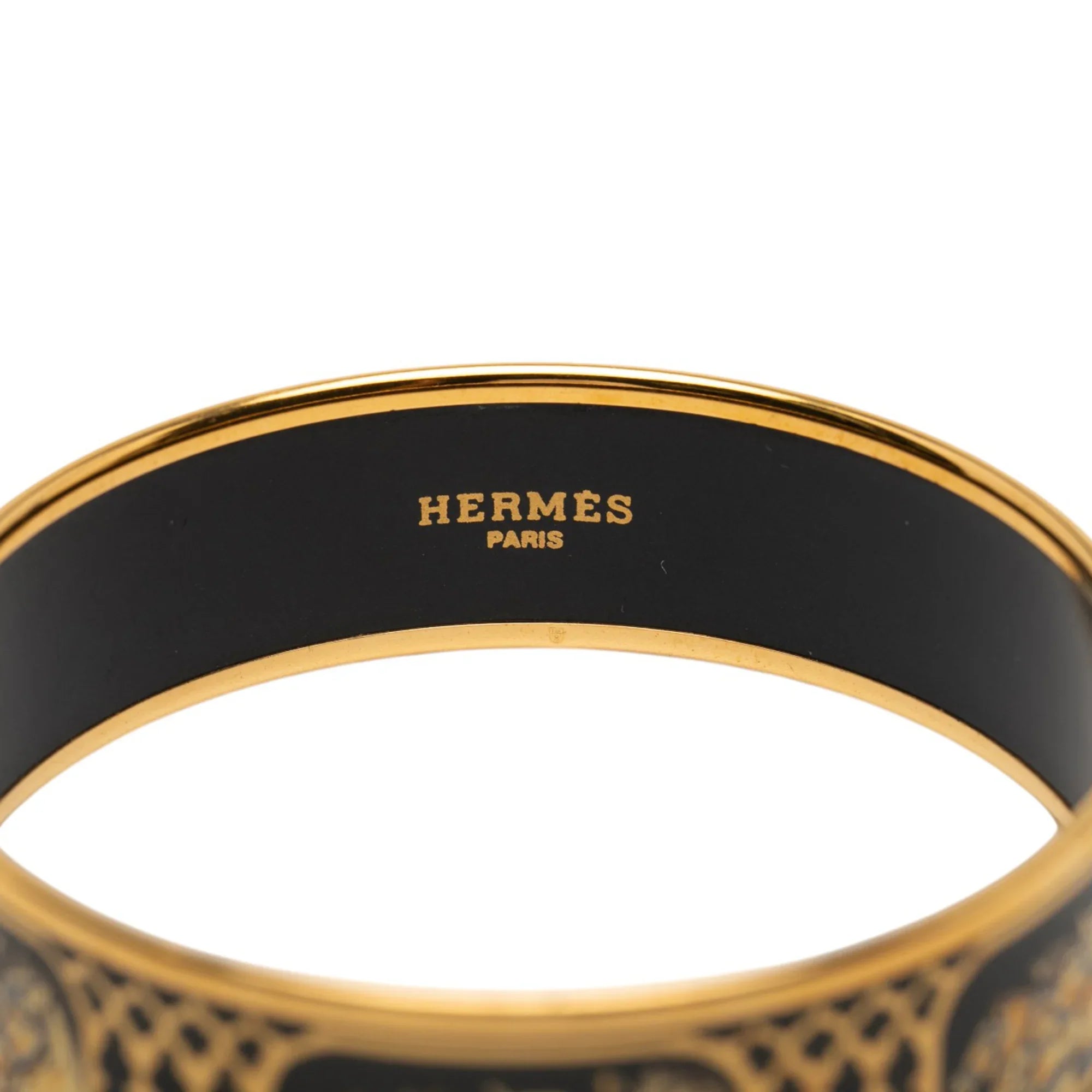 Black Hermès Wide Grand Apparat Enamel Bangle 65 Costume Bracelet
