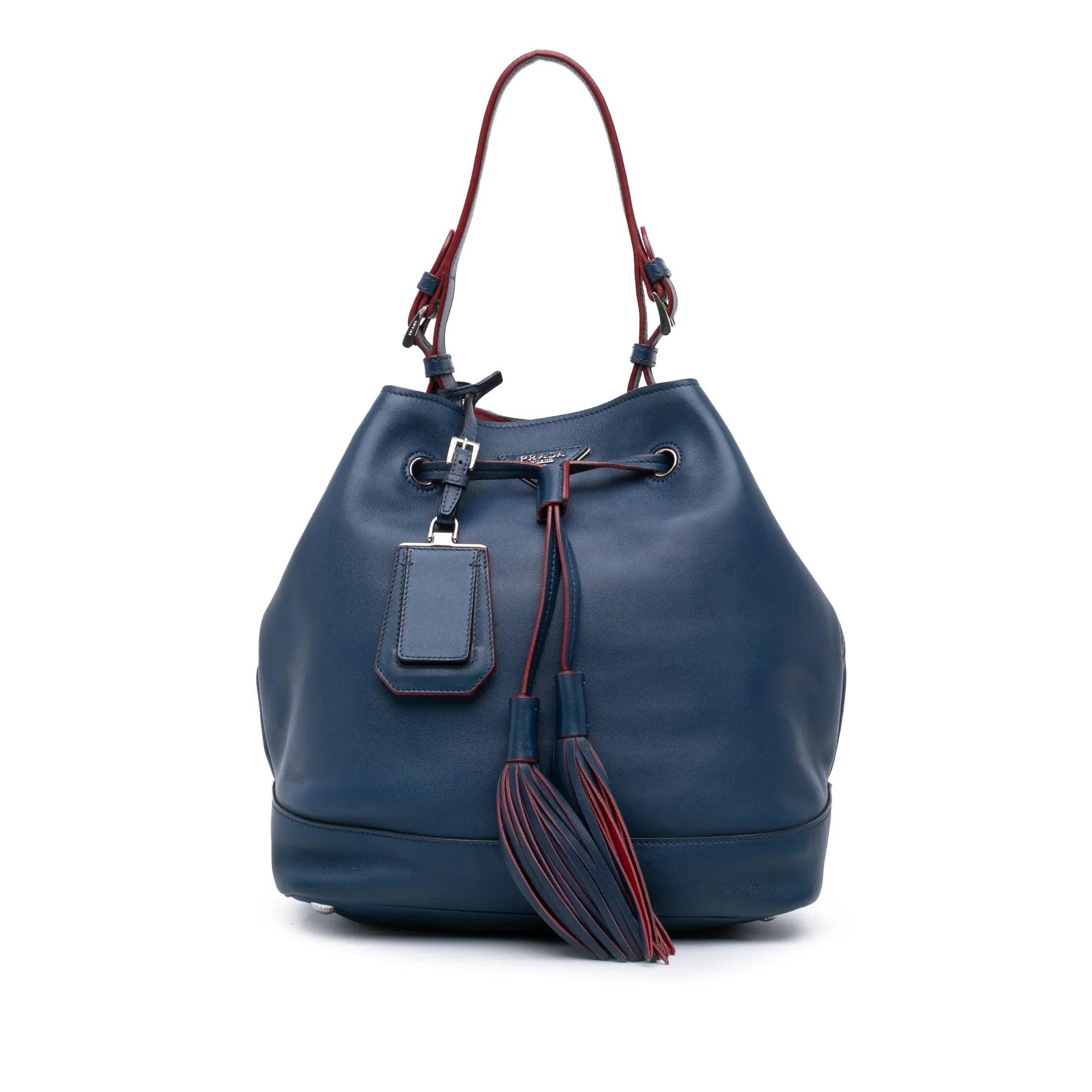 Blue Prada Soft Calf Tassel Convertible Drawstring Bucket Bag Satchel