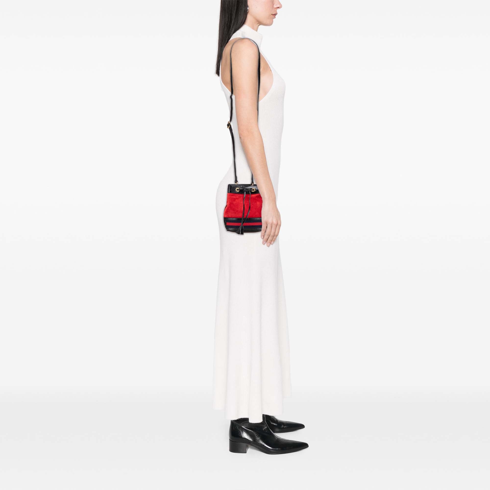 Red Gucci Mini Suede and Patent Web Ophidia Bucket Bag