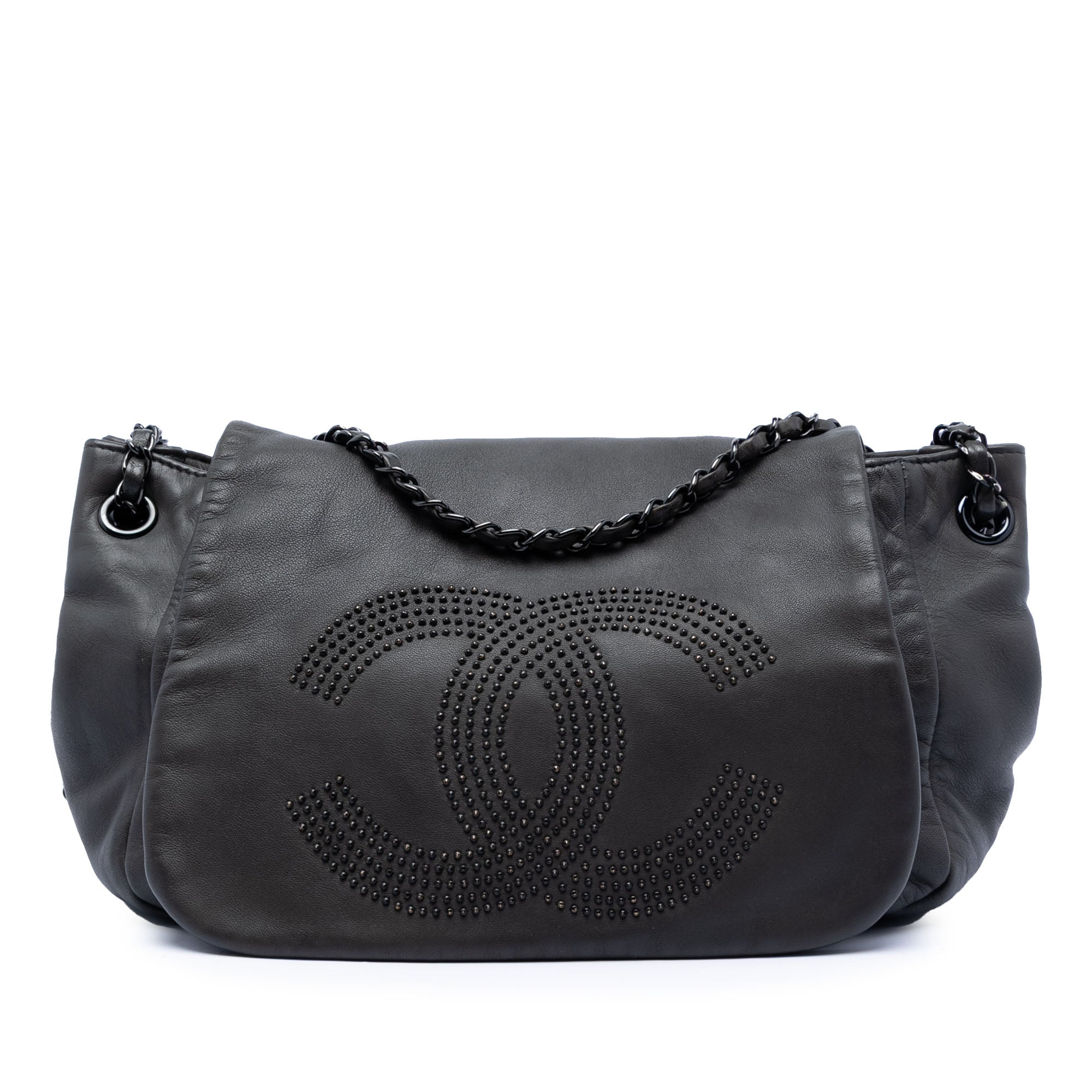 Black Chanel Lambskin Studded CC Accordion Flap Shoulder Bag