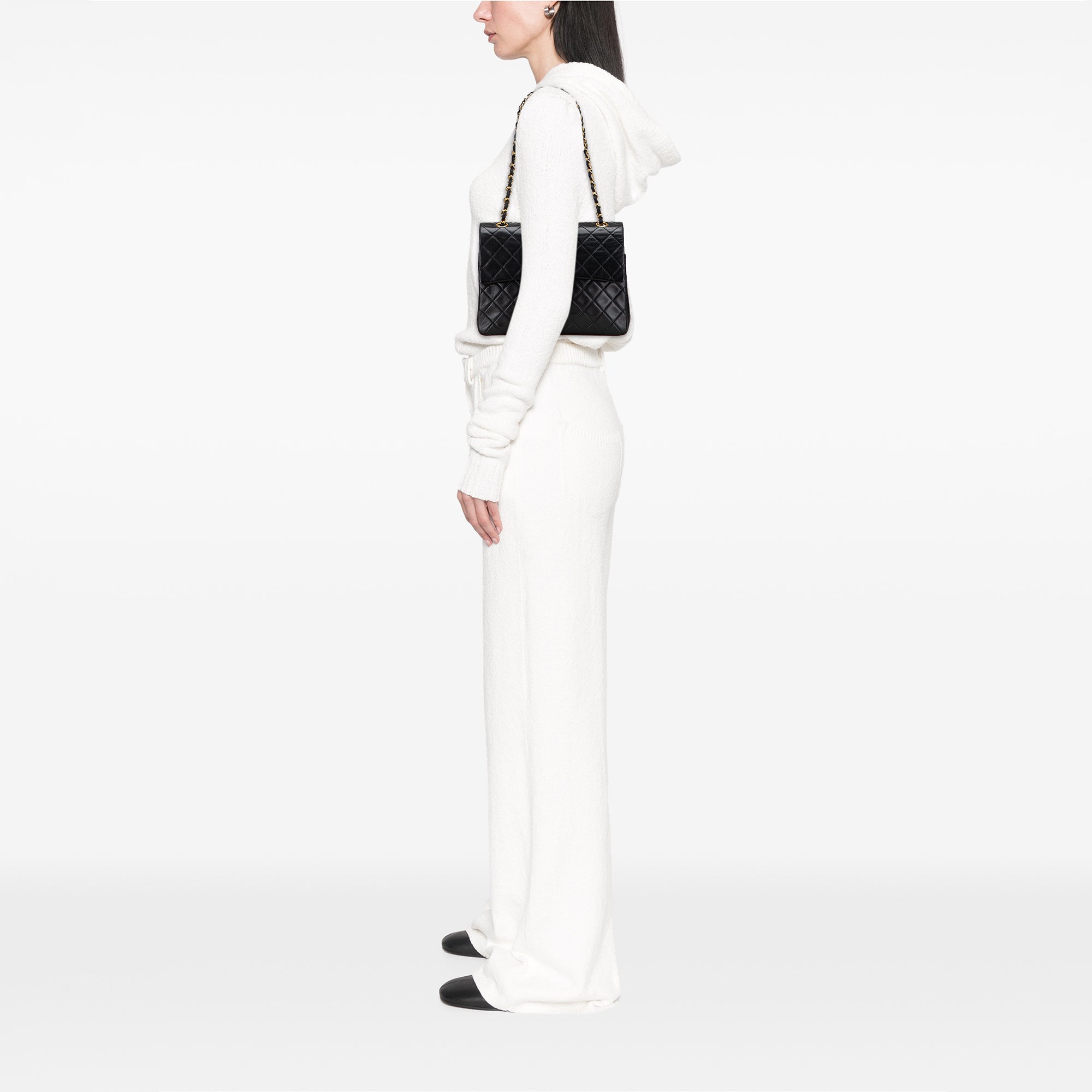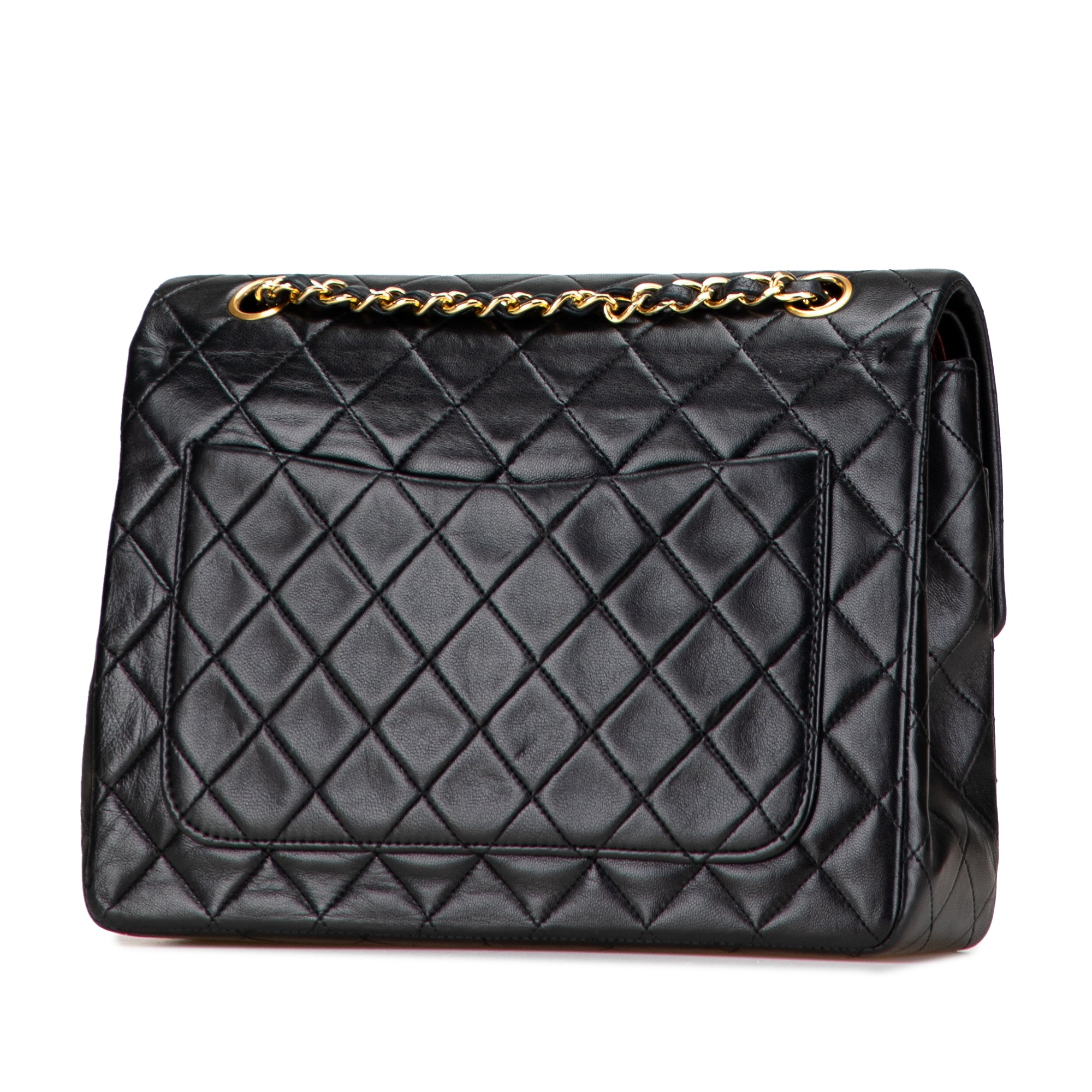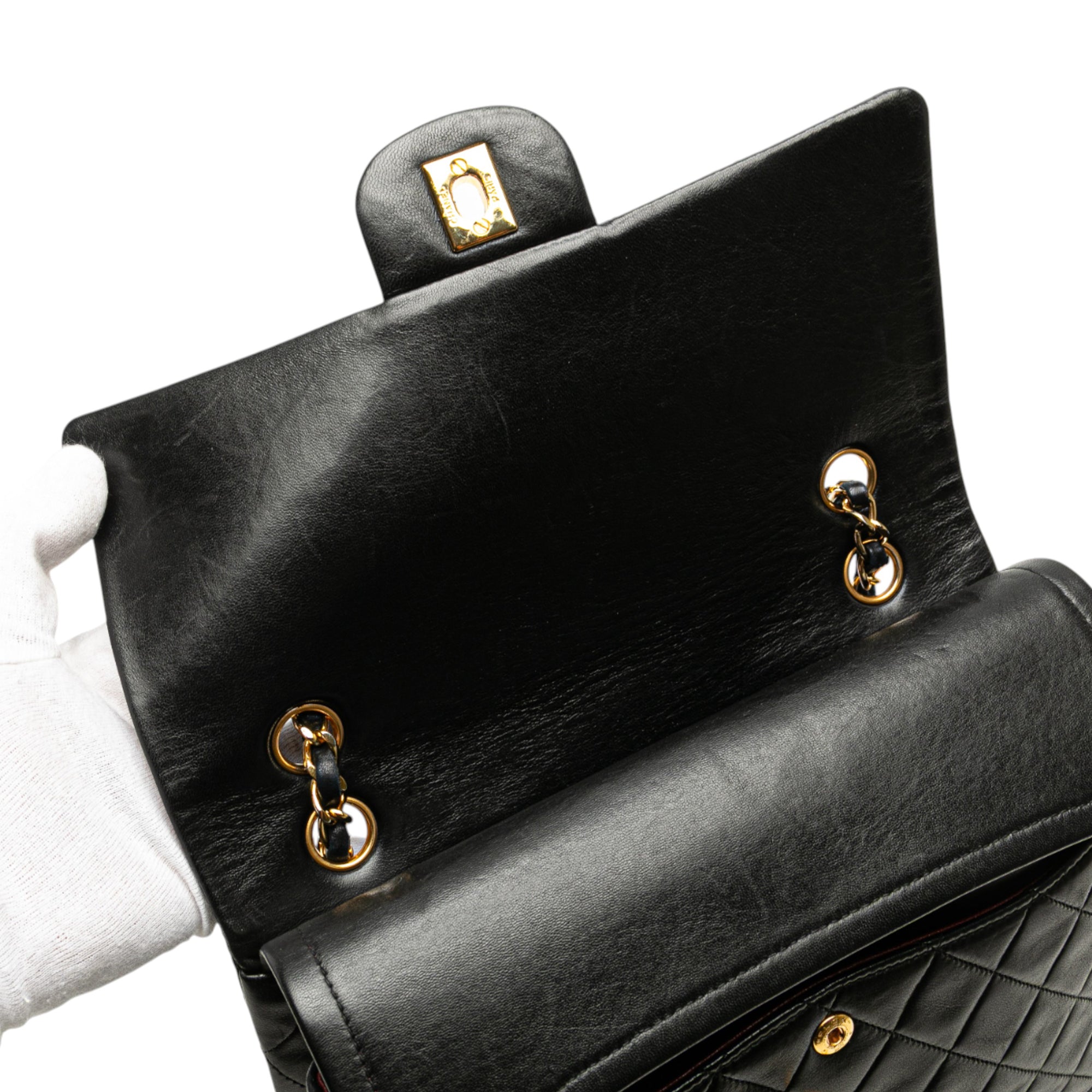 Black Chanel Medium Tall Classic Lambskin Double Flap Shoulder Bag
