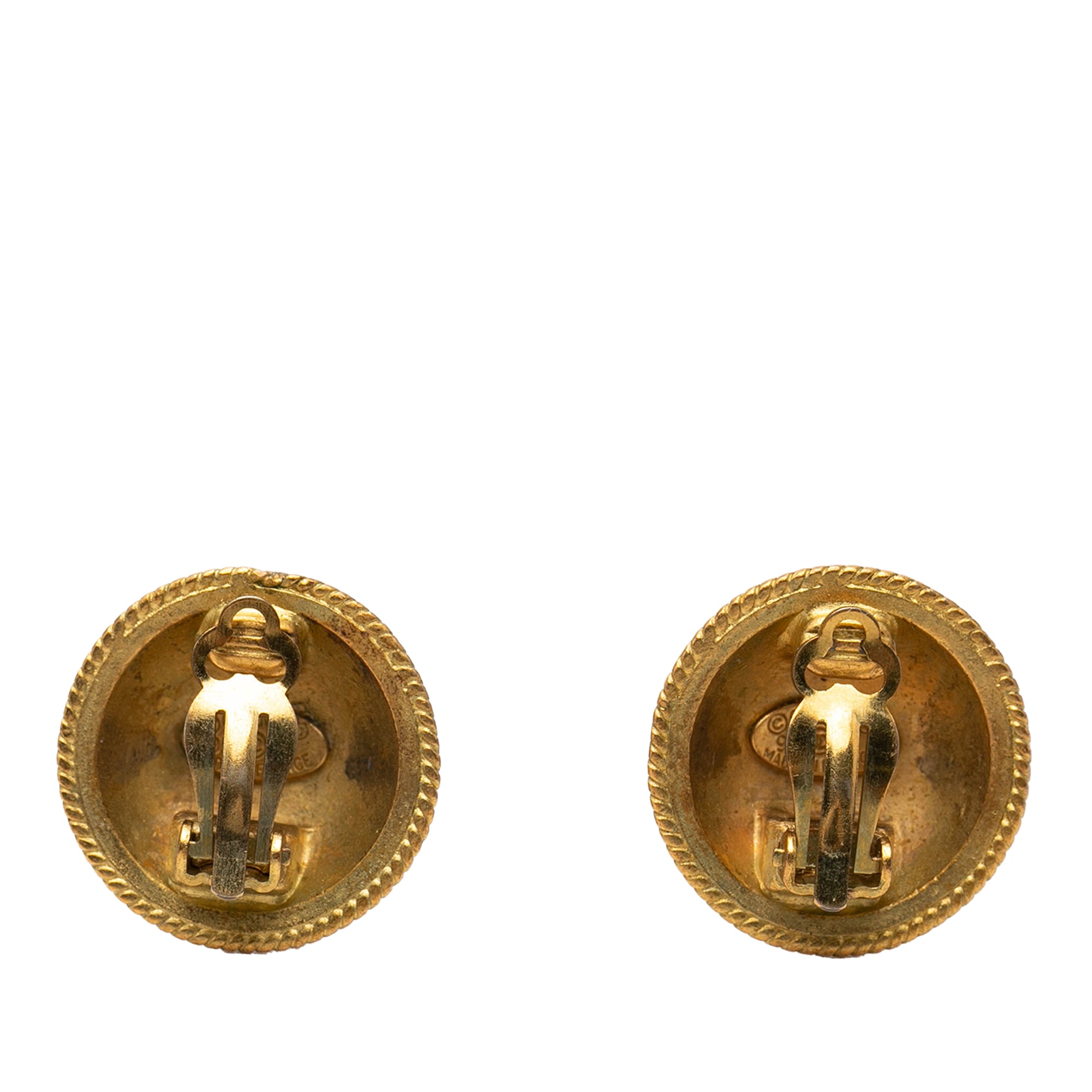 Gold Chanel CC Gold Plated Round Clip On Earrings