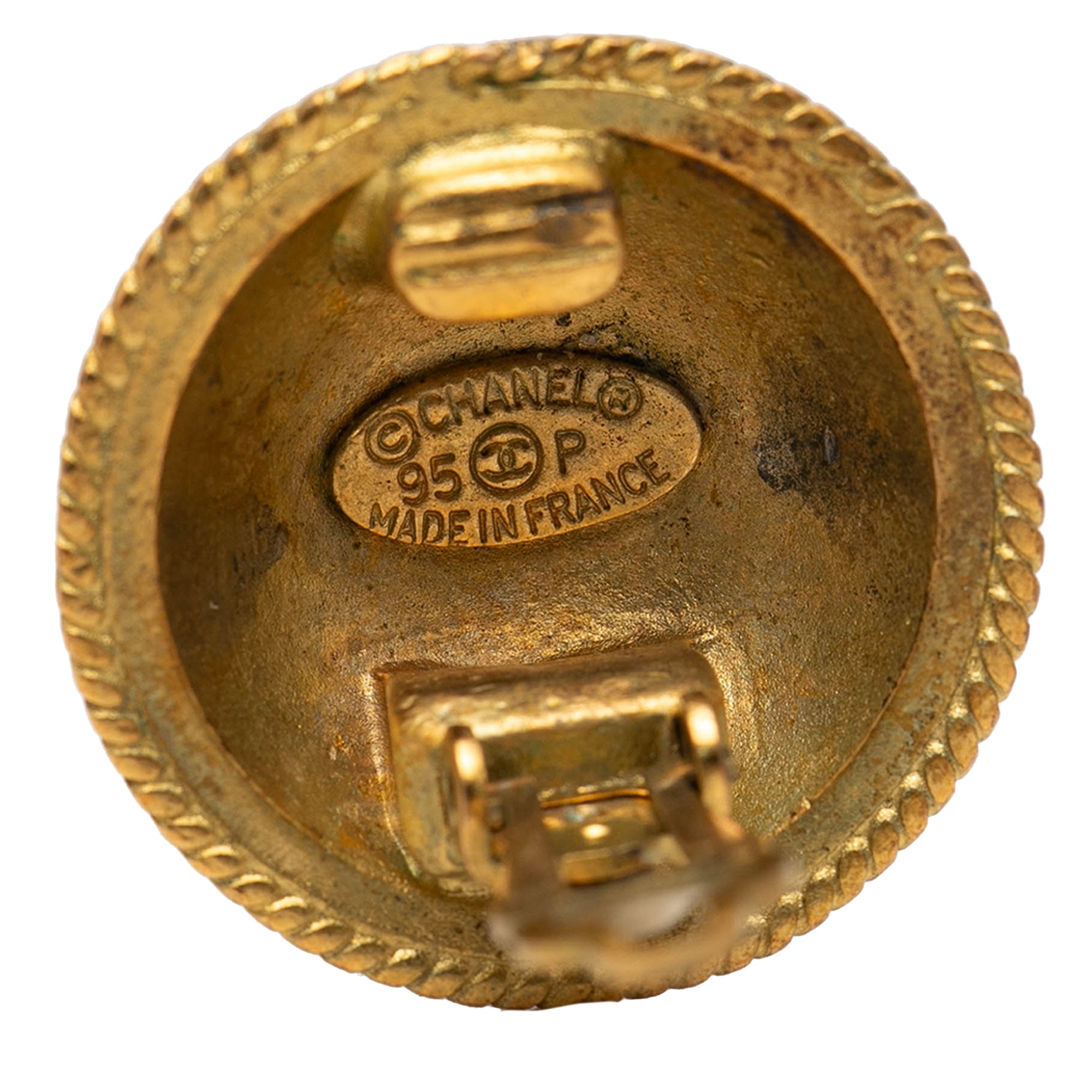 Product Details: Gold Chanel CC Gold Plated Round Clip On Earrings. These earrings feature gold-plated bodies and back clip-on closures. 0.9" L x 0.9" W x 0" D. Serial number 95P.