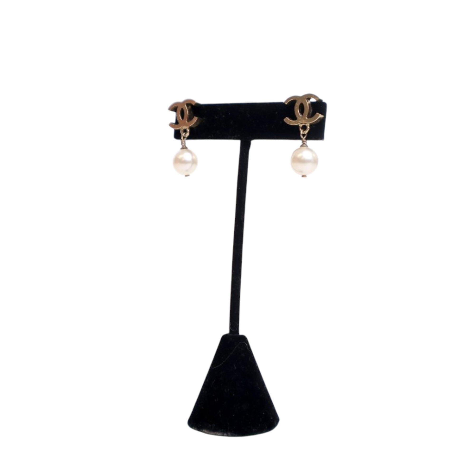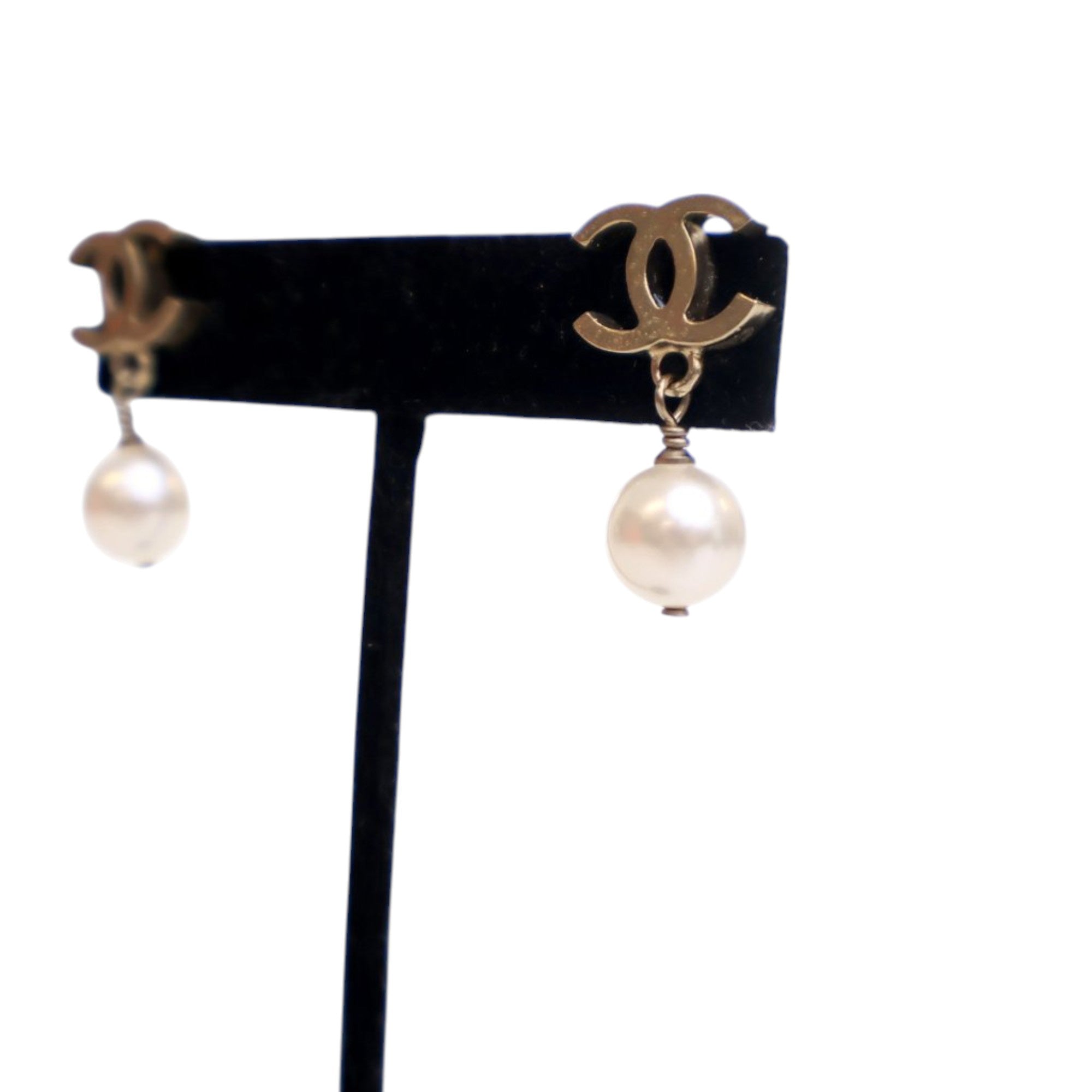Gold Chanel Gold Plated CC Faux Pearl Drop Push Back Earrings