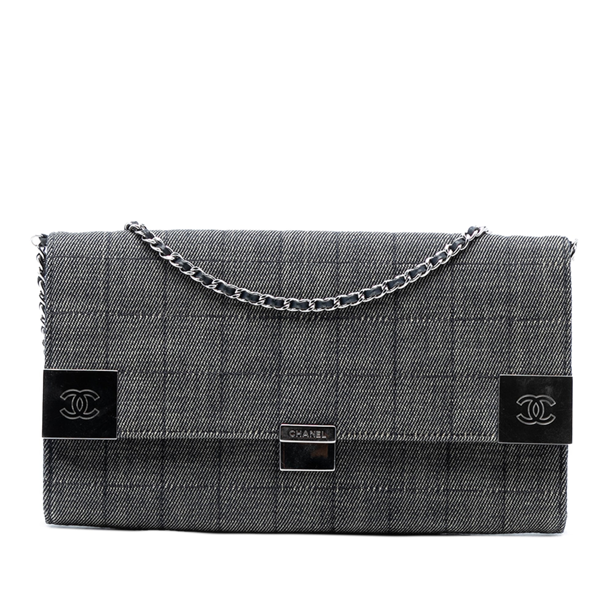 Gray Chanel CC Choco Bar Denim Chain Flap Shoulder Bag