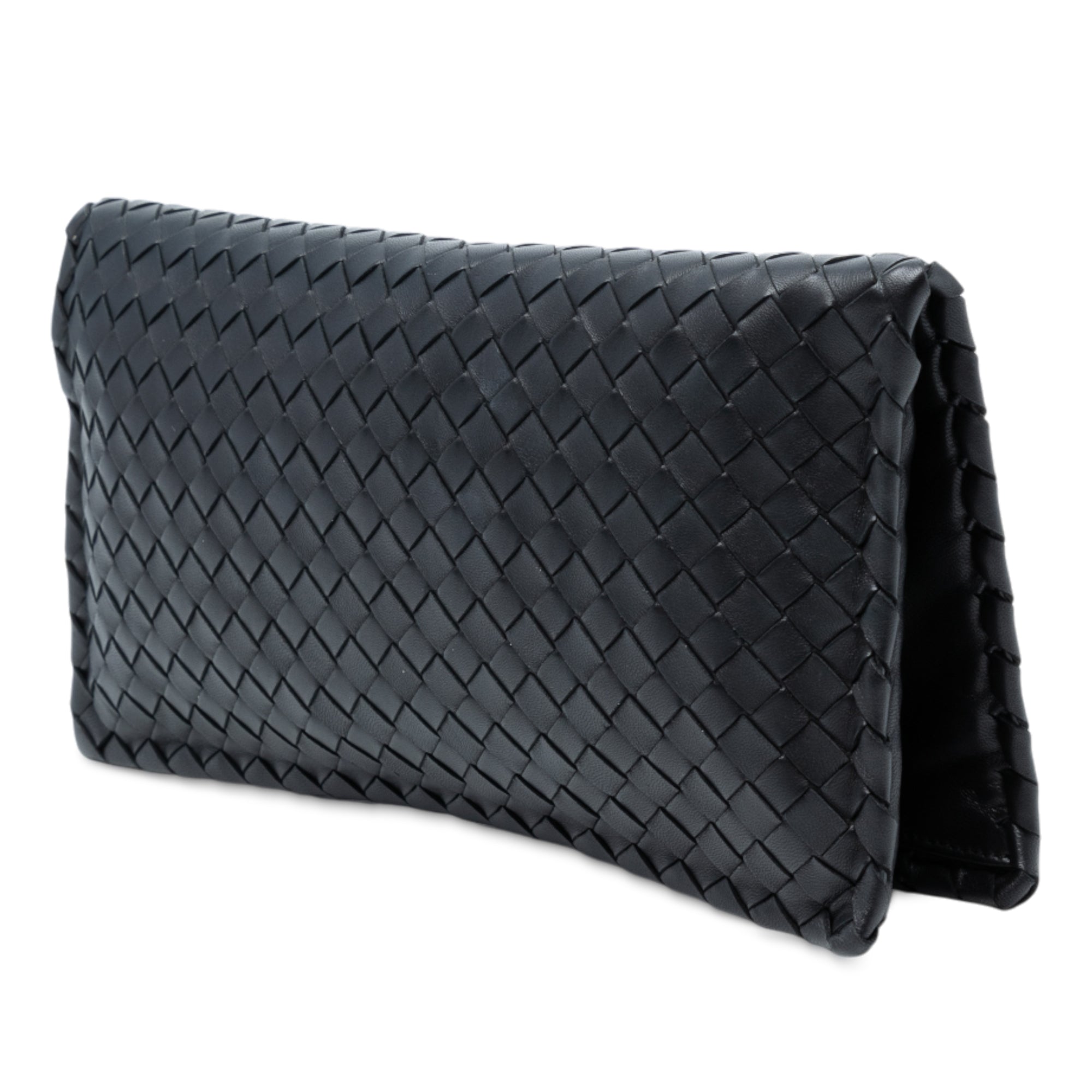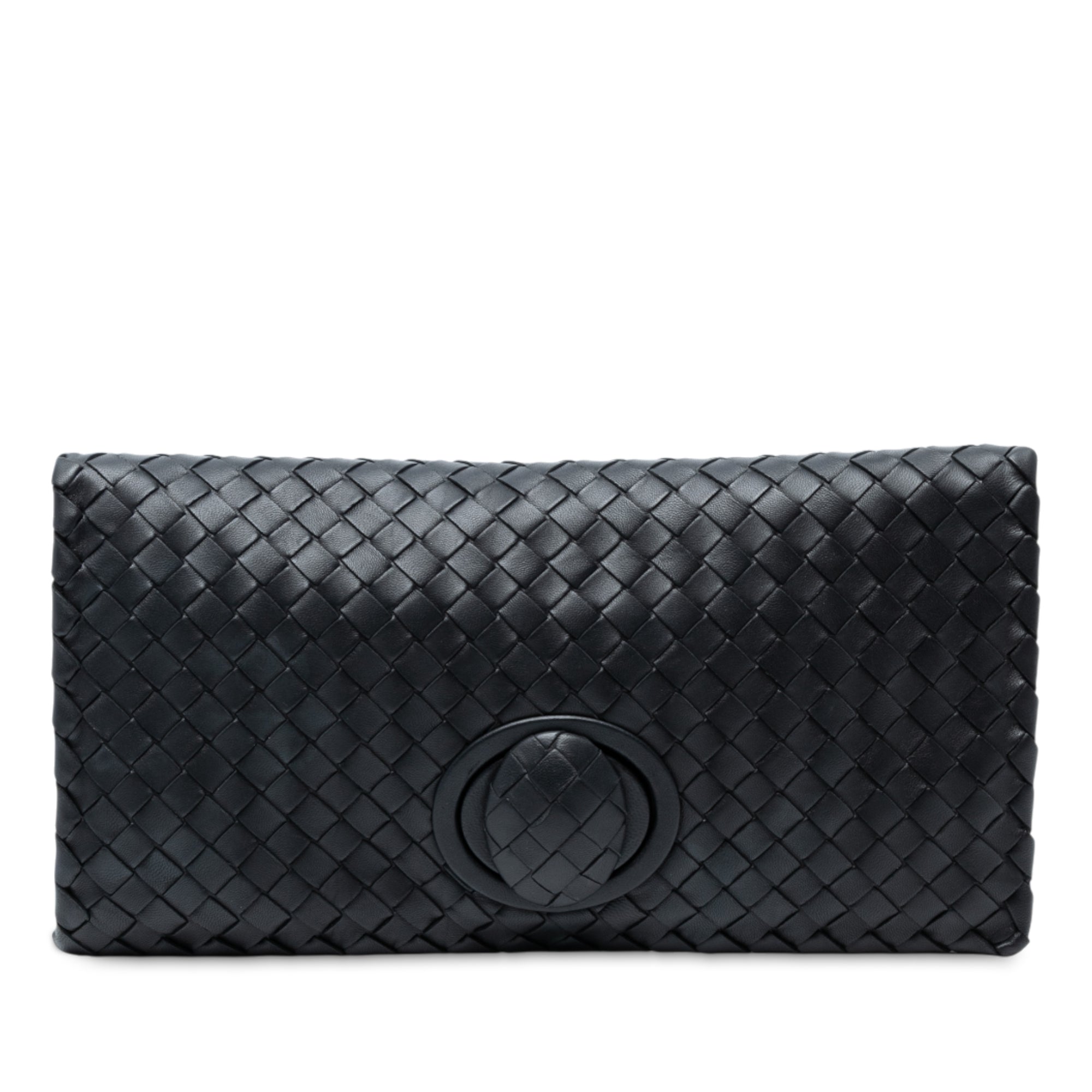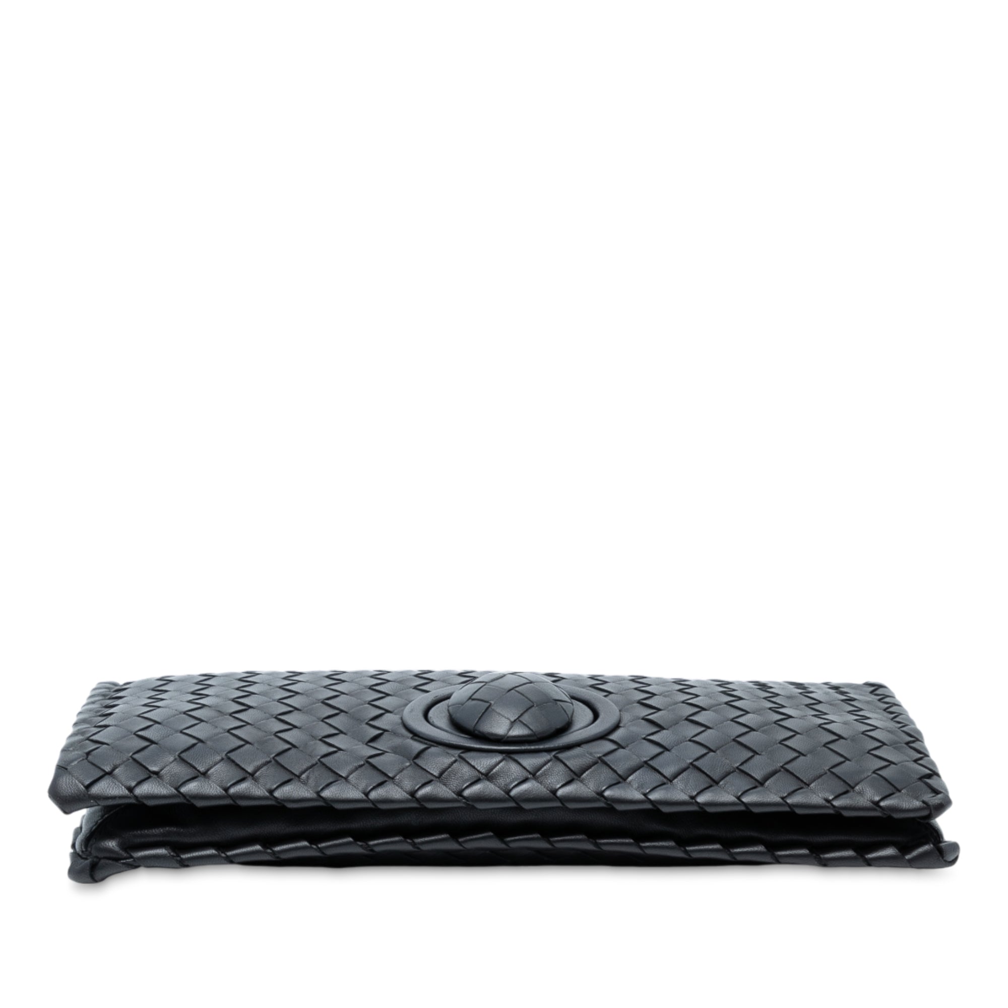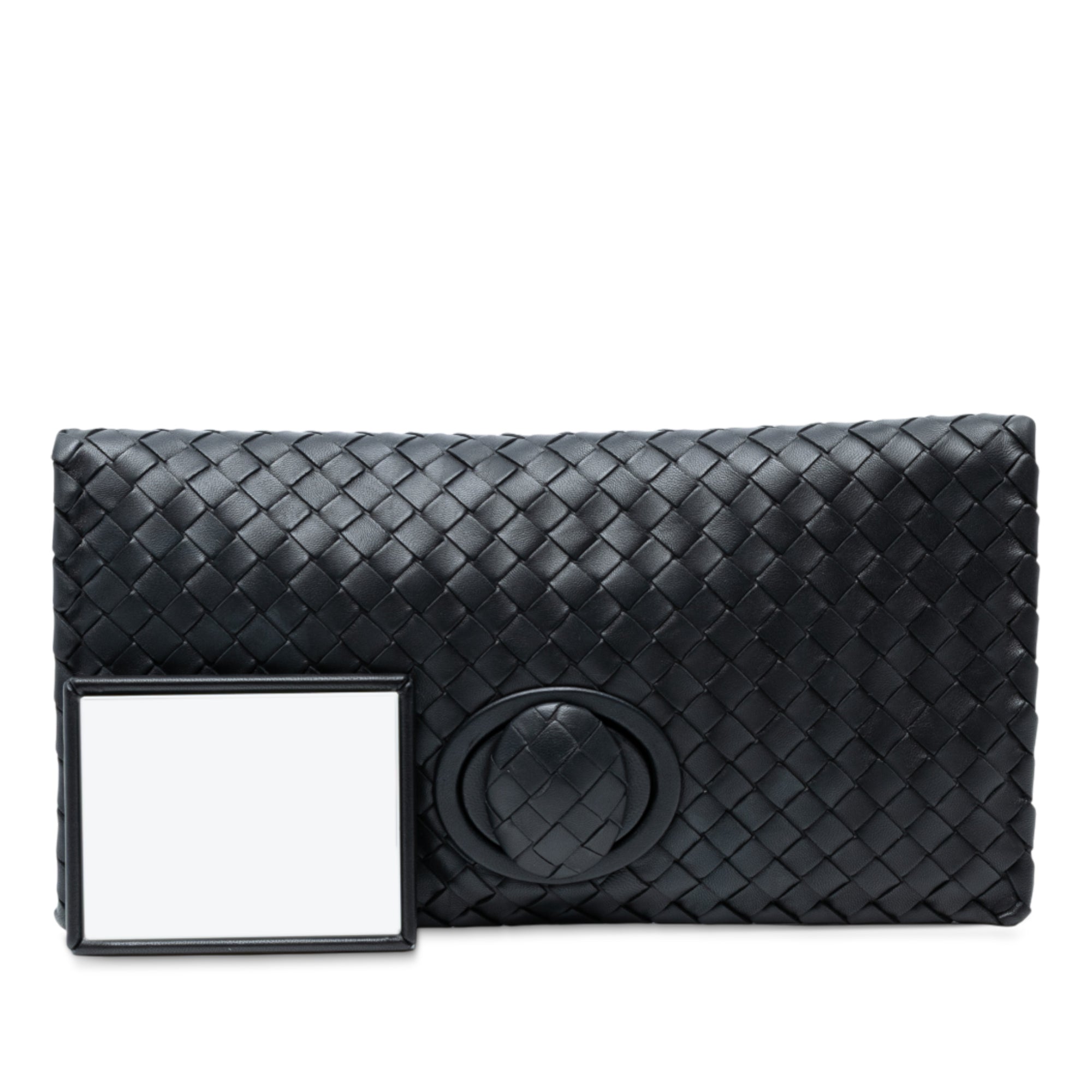 Black Bottega Veneta Nappa Intrecciato Turn Lock Clutch