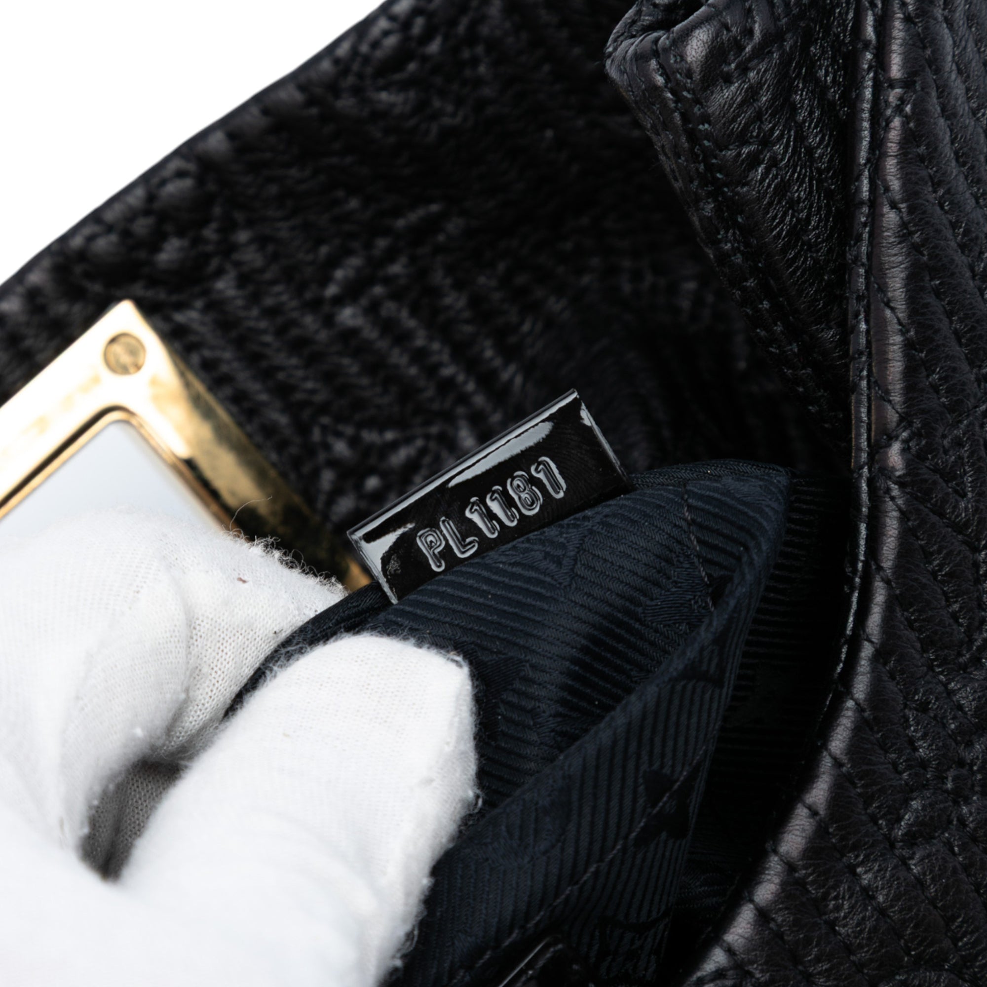 Product Details: Black Louis Vuitton Monogram Pochette Altair Clutch Bag. The Pochette Altair features a leather body, a front flap with turn lock closure, and an interior slip pocket. 6.7" L x 10.8" W x 2.2" D. Serial number PL1181.