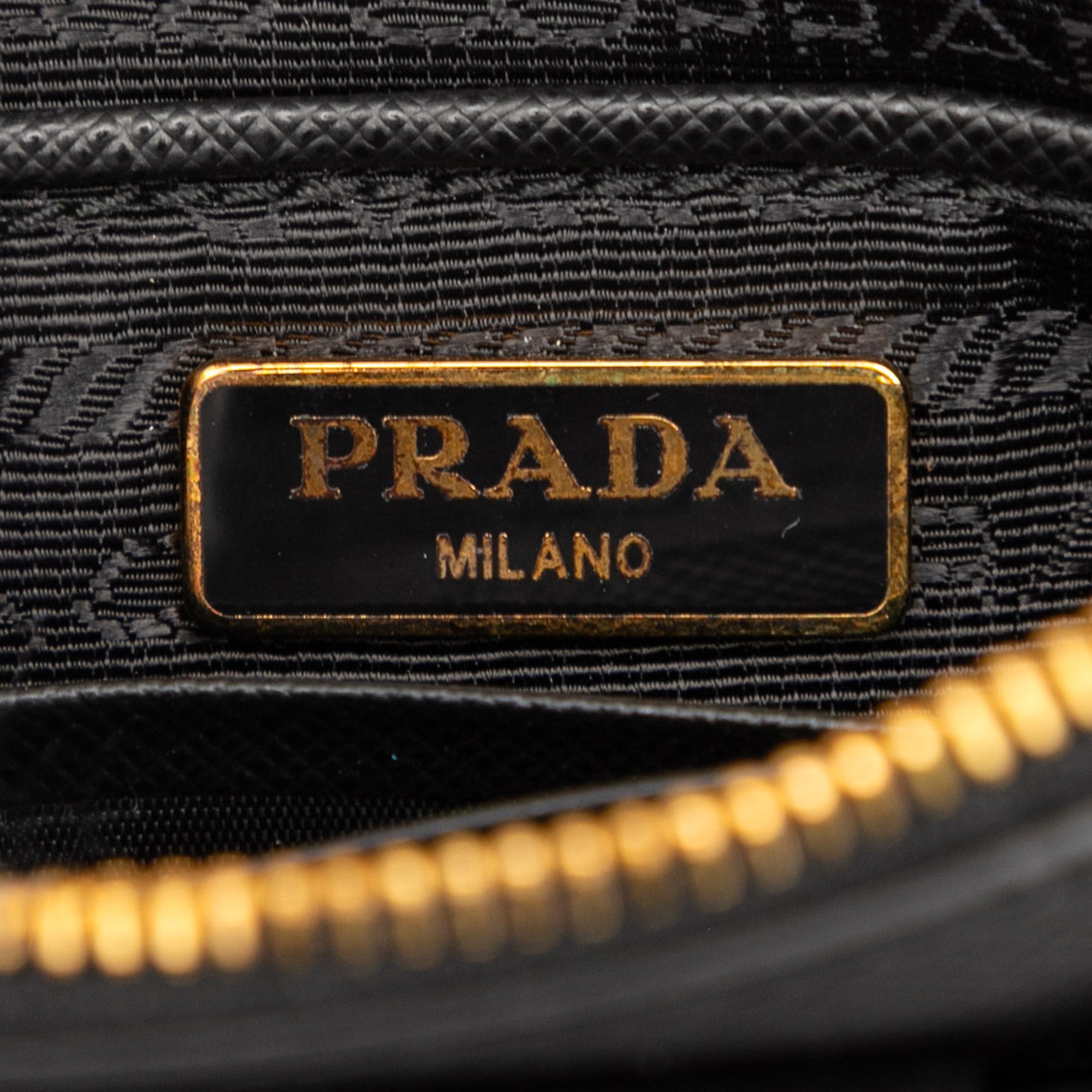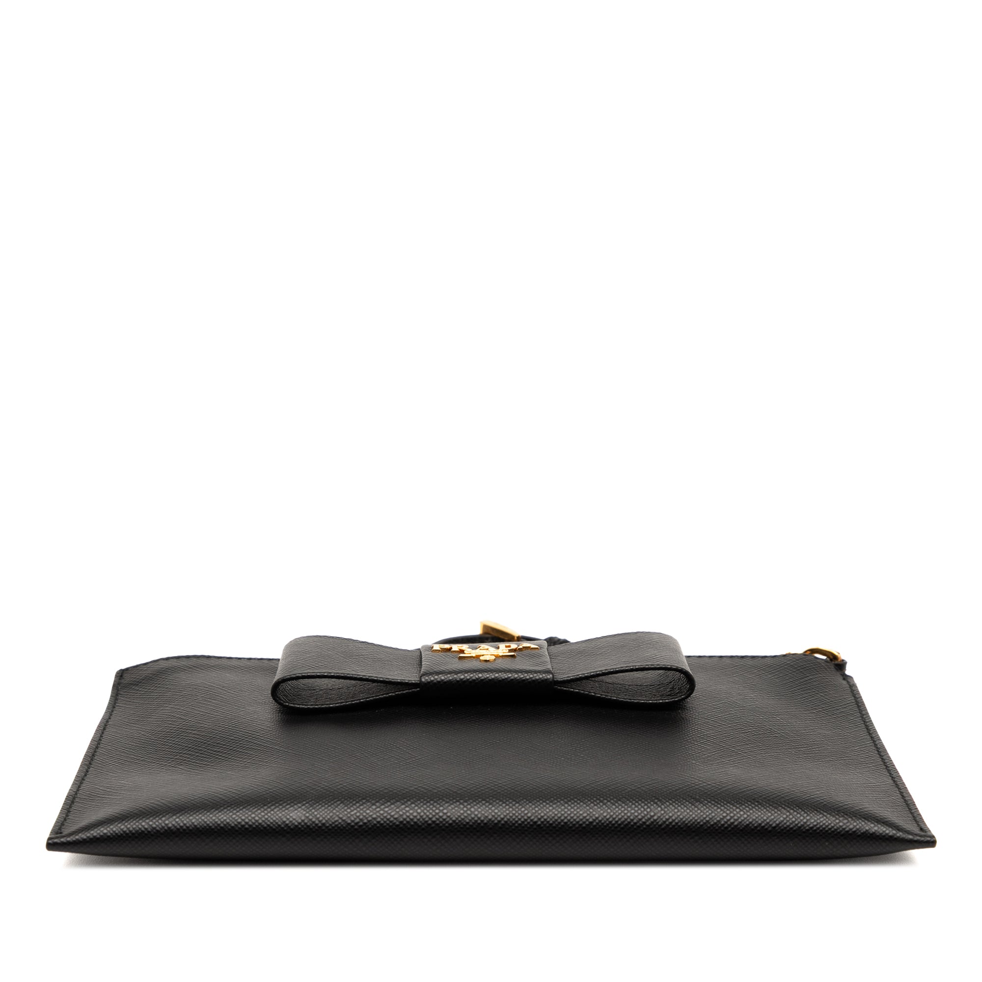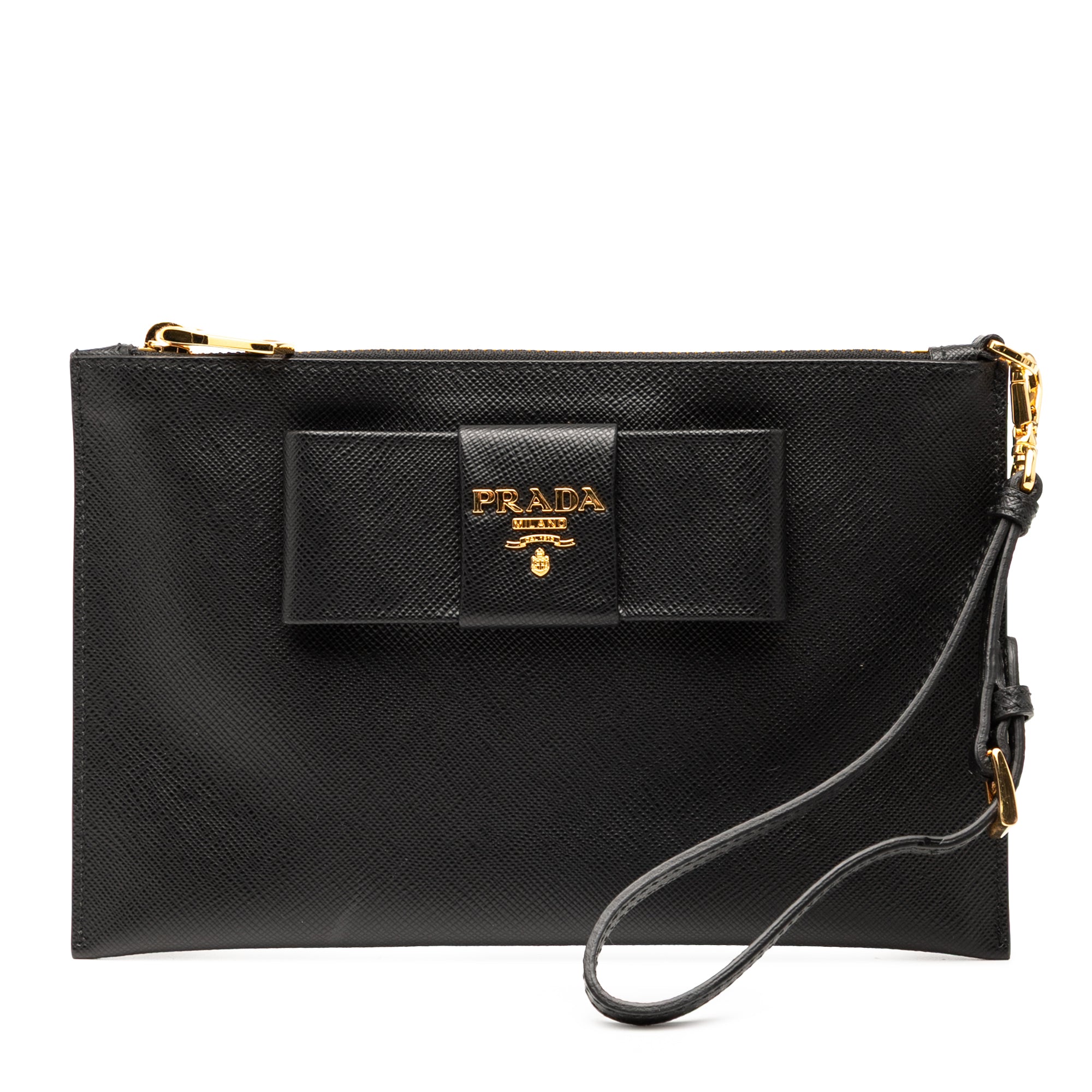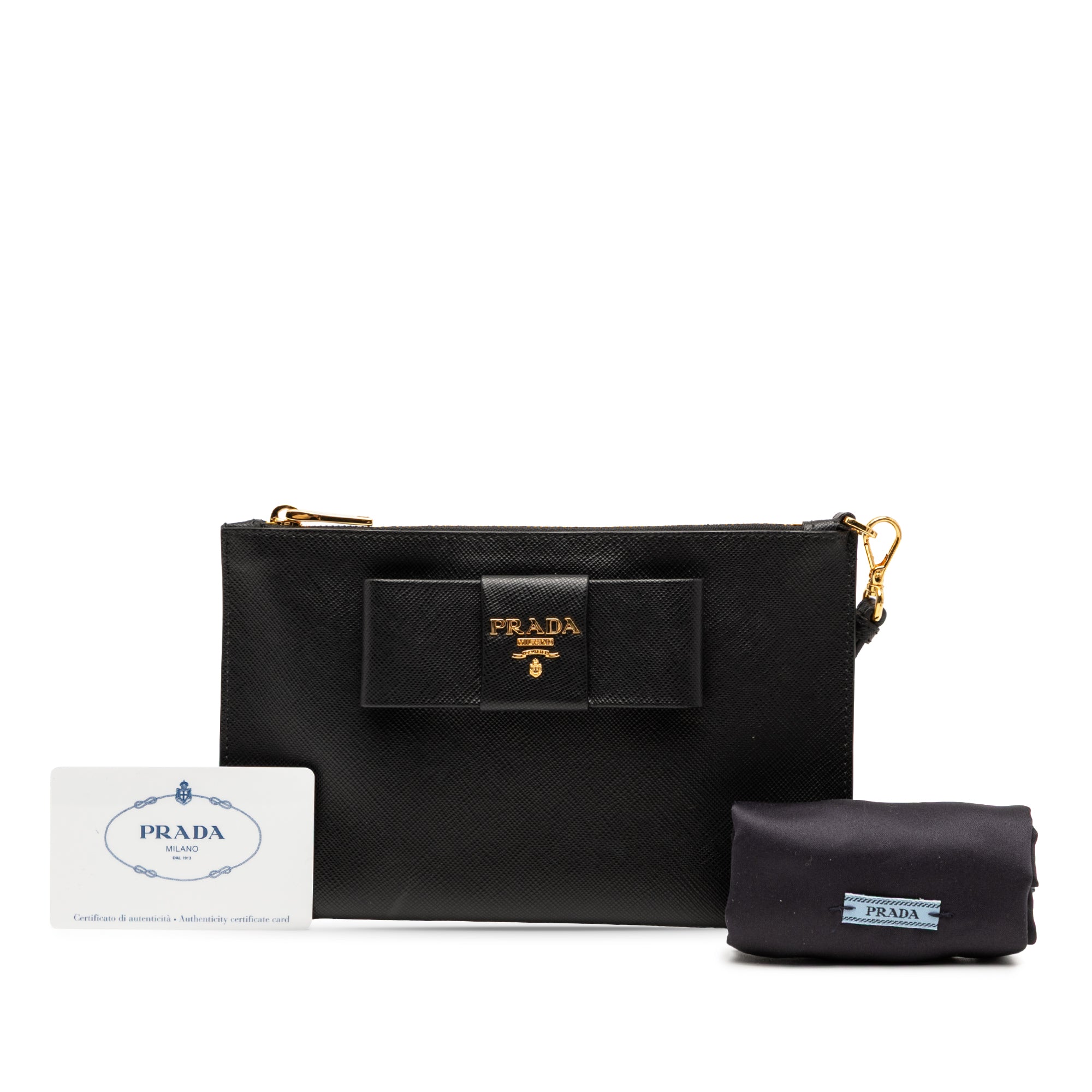 Please note this is a pre-owned item that may display signs of wear consistent with the condition listed above and shown in photos. Designer Revival guarantees this is an authentic Black Prada Saffiano Bow Clutch or 100% of your money back. Learn more about our authentication process.