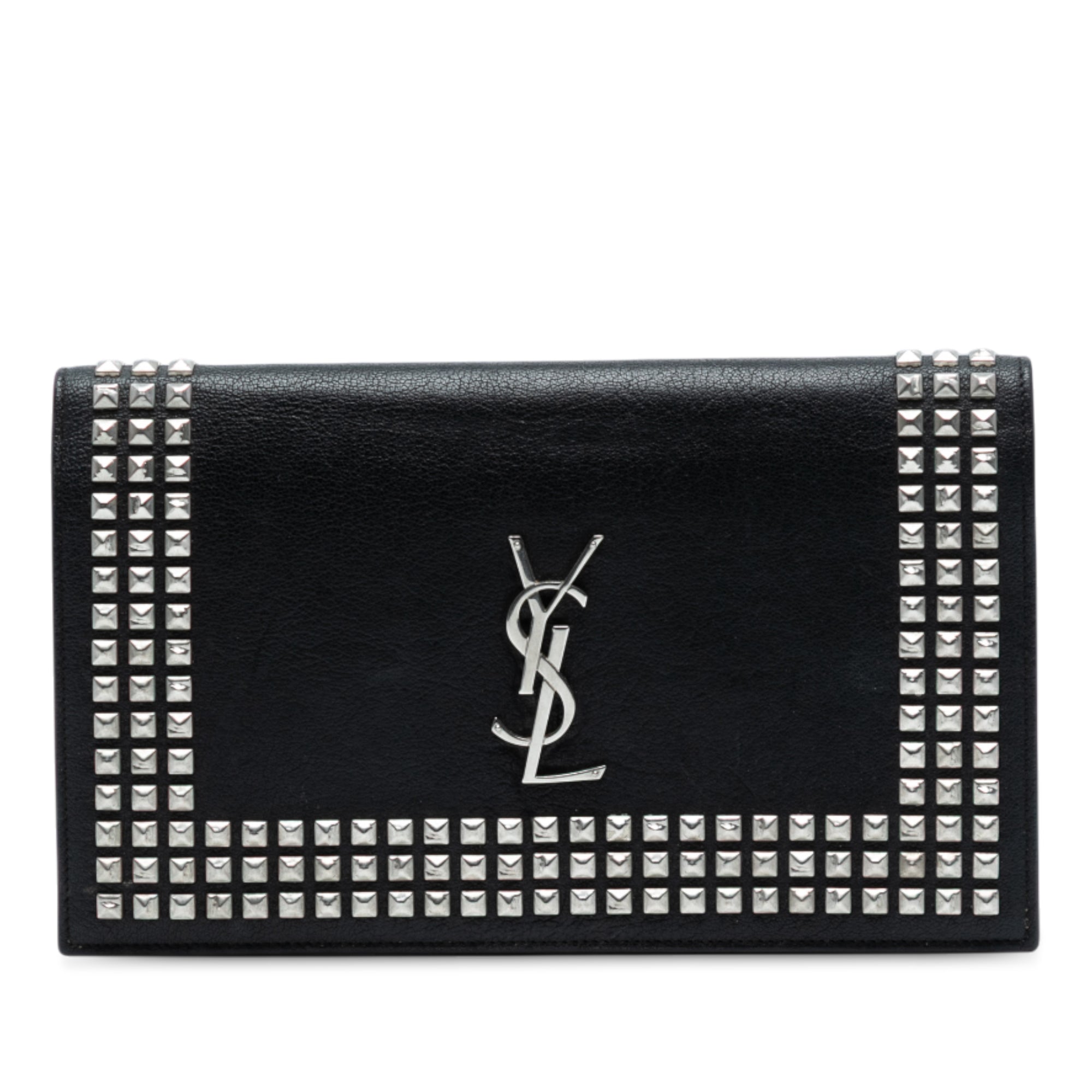 Please note this is a pre-owned item that may display signs of wear consistent with the condition listed above and shown in photos. Designer Revival guarantees this is an authentic Black Saint Laurent Studded Leather Monogram Clutch or 100% of your money back. Learn more about our authentication process.